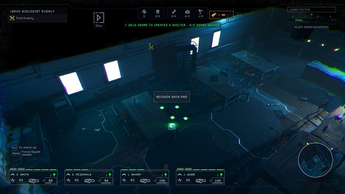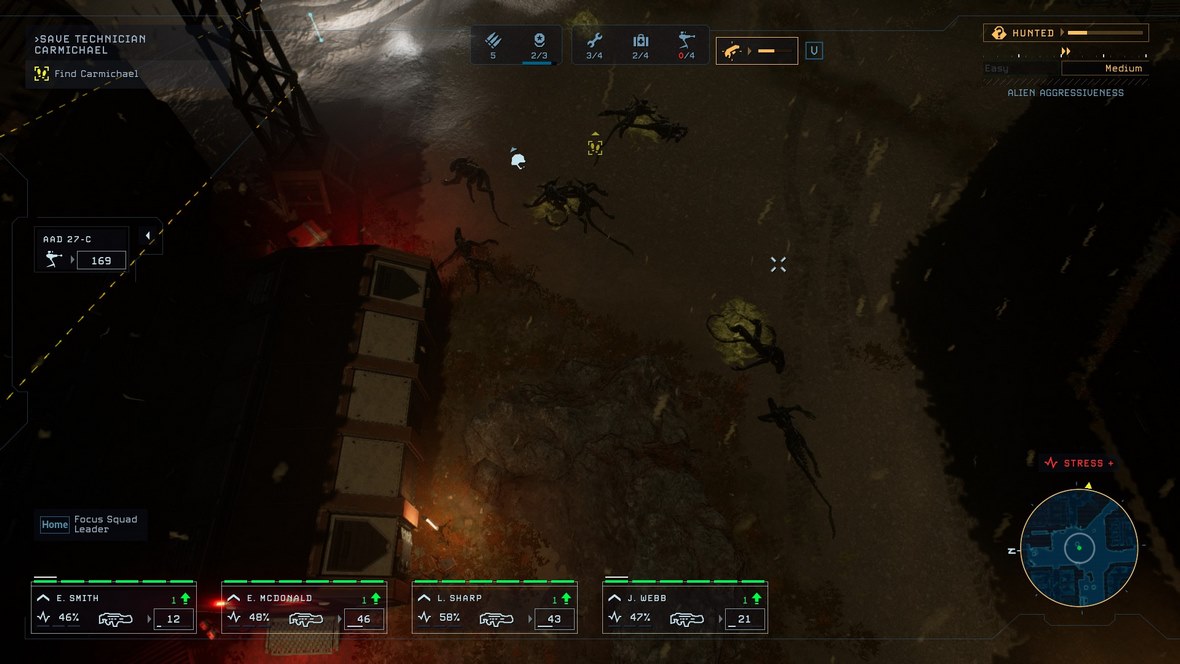 I grunden är Aliens: Dark Descent något så oväntat som ett RTS (real time strategy) kombinerat med Survival Horror. Tänk dig att du spelar Xcom eller Mutant Year Zero: Road to Eden, men kombinerar det med Outlast. Du väljer taktiskt var du vill gå någonstans genom att peka och klicka. När du väljer en av dina färdigheter; att kasta en handgranat eller byta vapen till ditt hagelgevär, saktar tiden ner eller om du hellre vill, stannar den helt. När tiden går igång som vanligt igen är det fullt fokus på paniken, stressen och överlevnad.