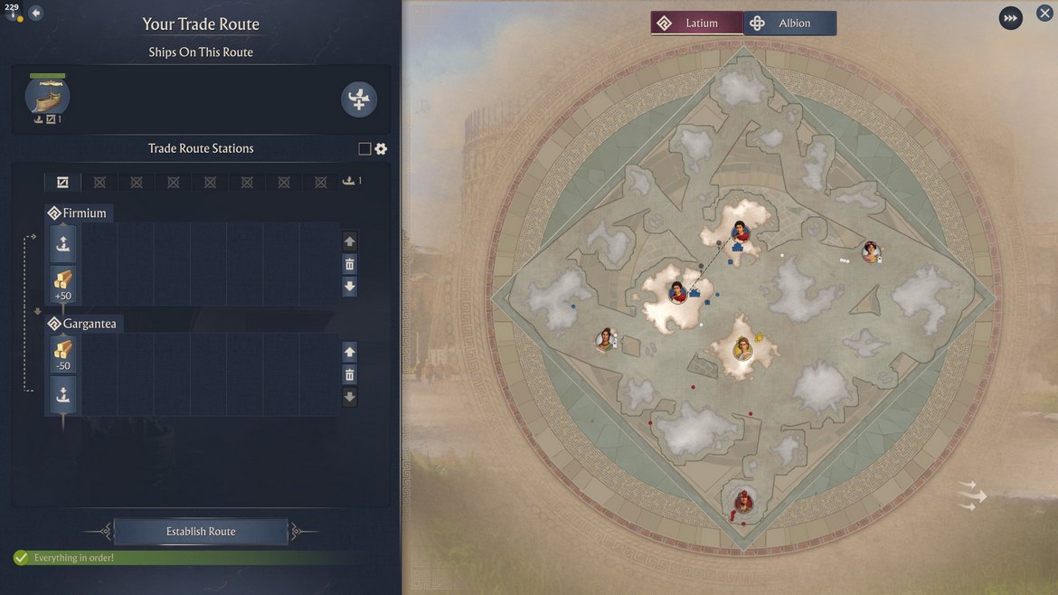 Spelet börjar i Latium, en romersk region full av bördiga marker och små öar att kolonisera. Här bygger du ditt första samhälle och sätter upp verkstäder, odlingar och produktionskedjor. Dina invånare kräver varor för att uppgraderas till nästa stånd, och med varje uppgradering låser du upp nya byggnader, möjligheter och resurser.