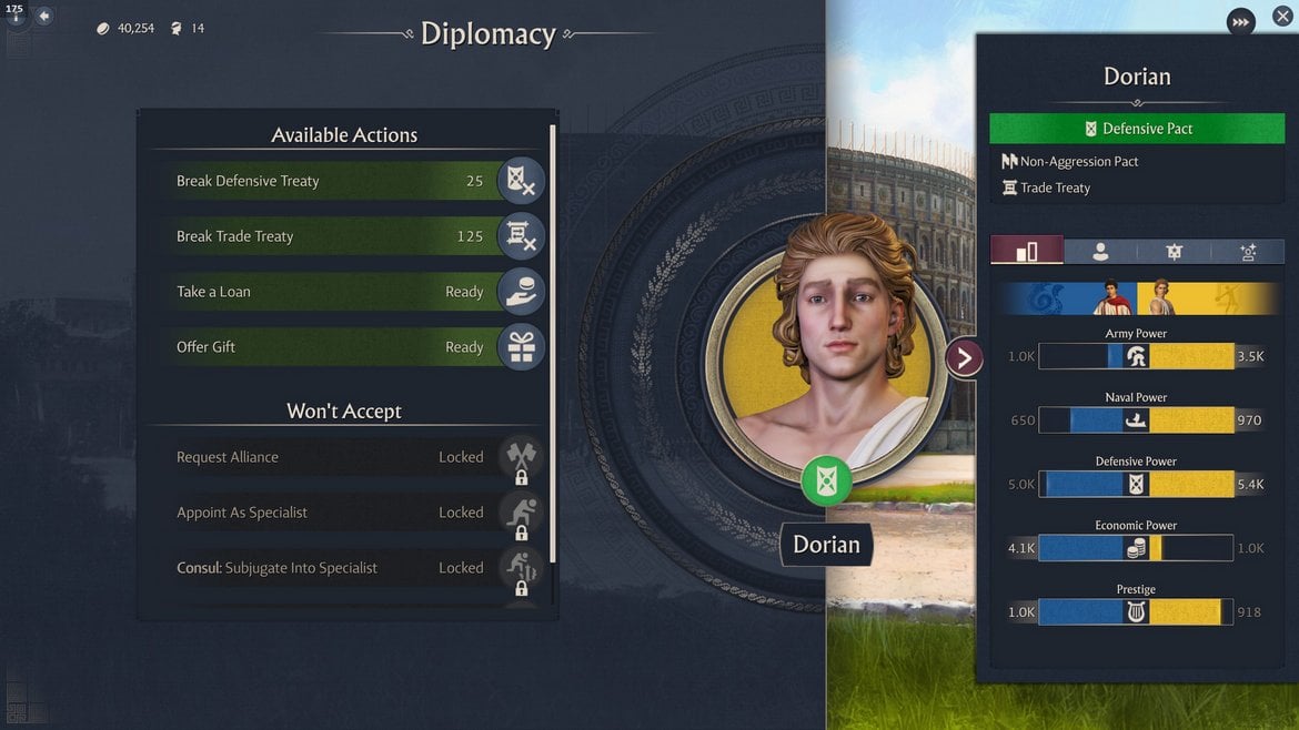 Pengarna flödar, men det gör även ansvaret – särskilt eftersom du sällan är ensam om öarna. AI-styrda motståndare tassar runt i periferin, redo att handla, förhandla eller i värsta fall ge dig problem. Diplomati är ofta en bättre väg än våld – något som säger en del om vilken spelstil utvecklarna vill uppmuntra. Sedan att du faktiskt kan slänga upp arméer, föra över dem med hjälp av din flotta till motståndaröar, och bränna allt du ser – det gör att det ändå får än mer action, för de som söker de aspekterna.
