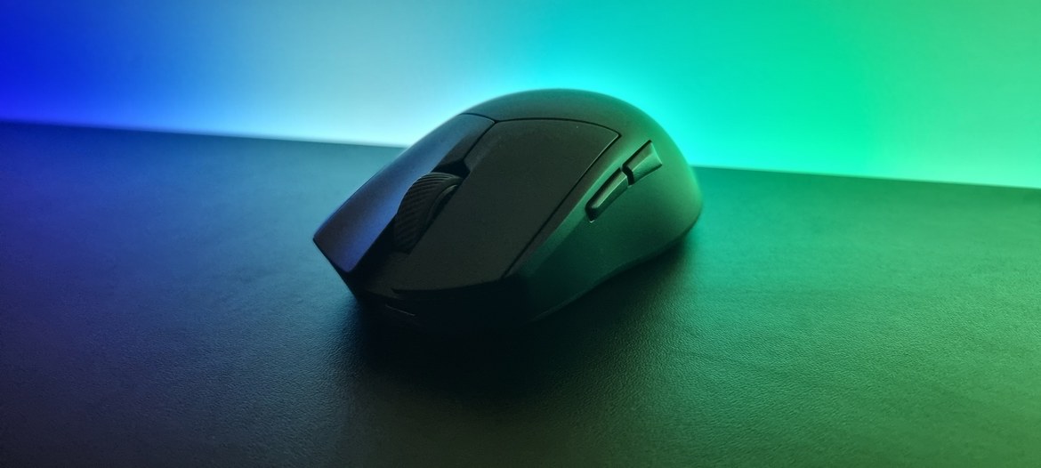 På ovansidan hittar vi ett stegbaserat skrollhjul med tydlig taktil känsla och lagom motstånd. Sidoknapparna är något smalare än genomsnittet, men är placerade tillräckligt högt för att tummen snabbt ska hitta rätt position. De saknar dock den premiumkänsla som vänster- och högermusknapp erbjuder. Och just huvudknapparna är faktiskt en av musens största styrkor. De optiska Omron-brytarna ger ett dämpat och mjukt klick med ett tydligt men behagligt motstånd. Resultatet är musknappar som känns både snabba och kontrollerade – särskilt i snabba spel där respons och precision är avgörande.