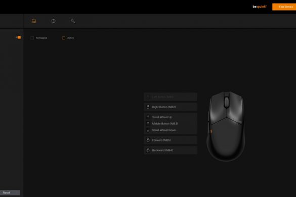 Det finns dock även en klassisk mjukvara – be quiet! IO Center – för den som föredrar det. Båda alternativen har ett ganska spartanskt men tydligt gränssnitt som är enkelt att förstå. Webbversionen verkar däremot fortfarande vara något av en betaversion. Under mitt test behövde jag manuellt använda funktionen “Find device” för att hitta musen. Det är ingen större sak, men kan potentiellt förvirra mindre erfarna användare.