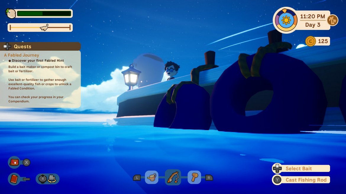 Dessvärre är väl det mitt största problem med spelet – visst kan jag ta all min tid i världen , men det finns saker som tar på tok för lång tid att göra. Vissa “Fabled” saker har intressanta krav. För att förvandla en vanlig lök till en vårlök behöver du vänta på att löken är redo för att skördas varpå du ska rotera kameran runt löken – vips, det blir en vårlök. En fisk-typ kräver att du ska fiska den på så långt avstånd som möjligt för att inte skrämma den – när det är gjort har du fått dess “Fabled” variant. Sen har du andra som är lite smådryga; se till att vätskenivån inte understiger 25% för gurkan, alltså behöver du hålla ett öga på vattenmätaren i din odling för att få “Fabled” gurkan.