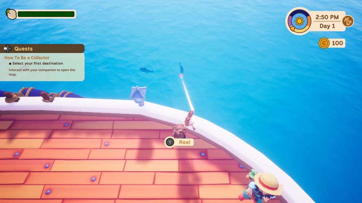 En annan för en fisk som jag aldrig lyckades få till, vilket var att jag skulle skrämma en papegoja (visste inte ens att de fanns i spelet), för att därefter fästa dess fjädrar på båten – följt av att fiska efter fisken. Jag hittade flertalet fjädrar som jag fäste på båten och letade efter fisken, men hittade den aldrig. Det är nog det svåraste med spelet, att hitta rätt fisk. Du kan se deras silhuetter i vattnet, inte exakt vilken sorts fisk det är, men dess storlek, vilket underlättar någorlunda. Vissa fiskar dyker enbart upp under natten, på ett sätt minimerar det sökandet, på papper i alla fall. Utav alla fiskar i första zonen var det den enda jag inte kunde hitta.