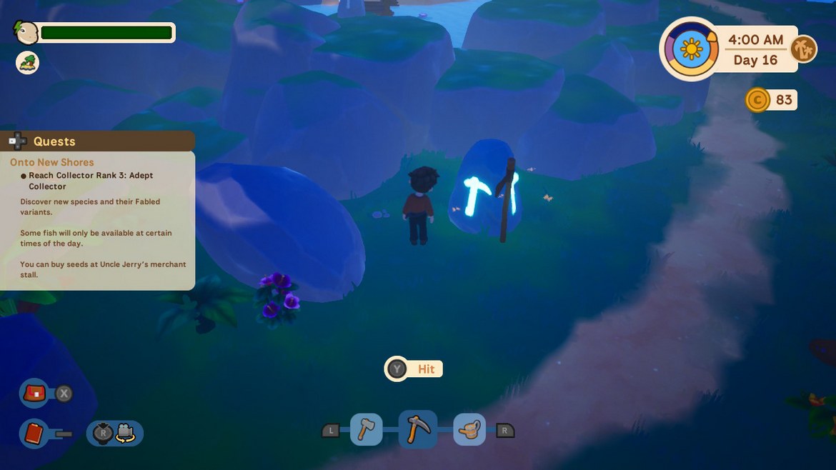 Vad gör vi med alla överblivna frukter, grönsaker och fiskar vi har då? Du kan antingen mata dem till ditt djur, vilket ger den extra uthållighet när den färdas mellan öarna – då slipper du att den pausar för en sovstund för att återhämta sig. Eller så säljer du det till en försäljare du kan kalla på när som, med mynten du får kan du köpa fler fröer, alternativt köpa uppgraderingar till båten eller kosmetiska saker till ditt djur.