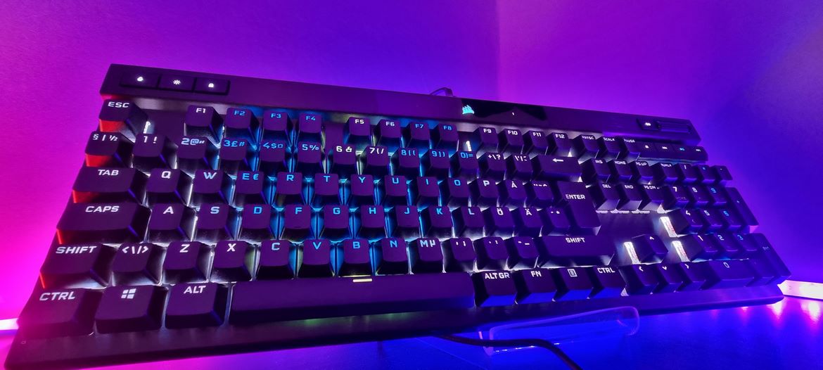 Utöver detta bjuder tangentbordet även på upp till 50 lokala profiler, USB-C kontakt på baksidan för bättre portabilitet, en knapp för att gå till ”Tournament” läge ( stänger av macros, belysning och andra eventualla distraktioner) och stöd för iCUE (Corsairs programvara) vilket även de adderar till redan nämnda helhet. Ja, nog är det en redig totalitet som ges här, även om jag gärna sett att den kommit med en USB-port för möjlighet att koppla in andra enheter direkt in i tangentbordet. Detta och priset är egentligen tangentbordets enda svagheter i mitt sinne…