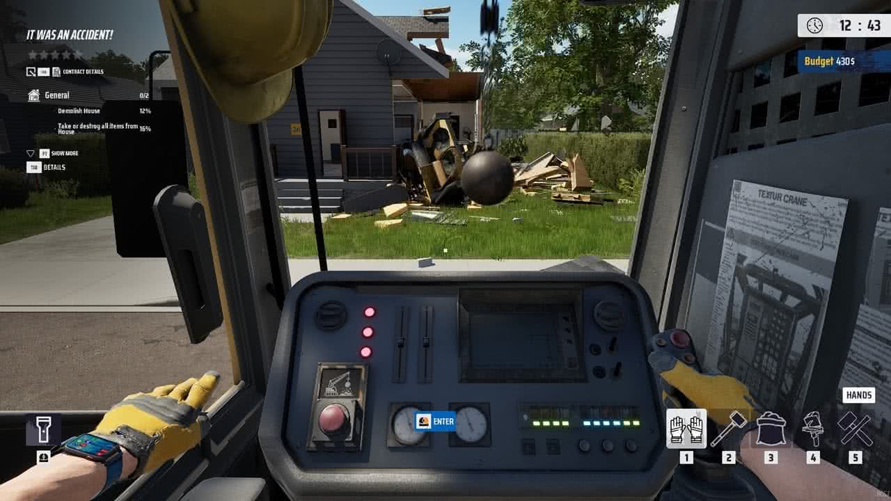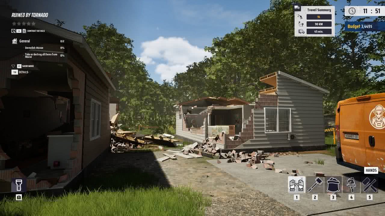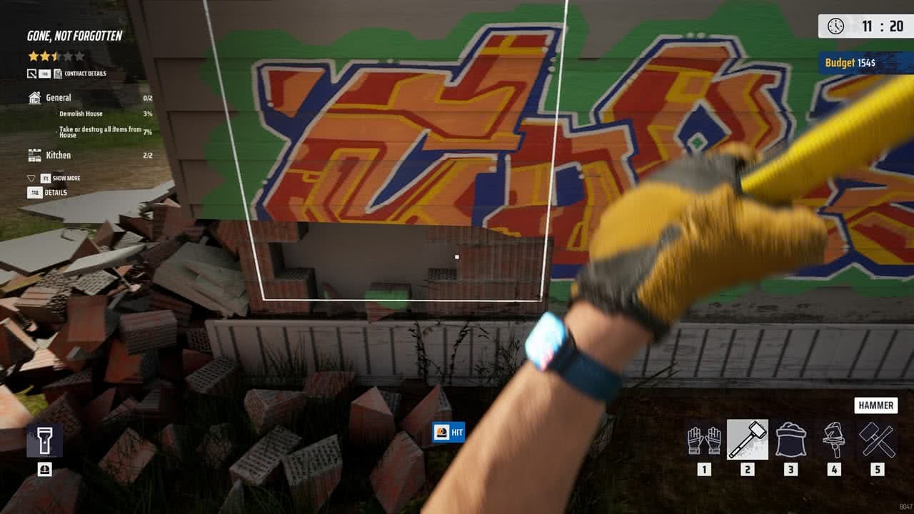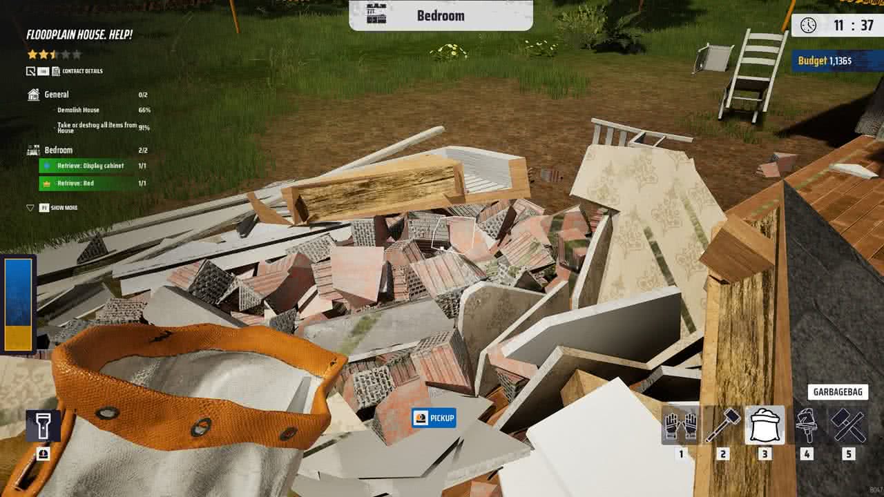 Det här är ett spel där jag som spelare ska ta isär saker. Sen om jag tar sönder dem med en skruvmejsel, slägga eller rivningskula är ju helt upp till mig. Upplägget är enkelt; jag tar mig an ett jobb, ser över vad som ska göras sönder, vad som ska bevaras – samt om det är något jag vill plocka med mig för att sedan sälja. Många gånger är jobbet att förstöra ett hus, men ägarna vill behålla vissa saker, och jag behöver bära ut dem till deras bil. Inga problem där. Men sen har vi de jobben där jag bara ska slå ut ett gäng väggar. Här behöver jag vara försiktig med vad som finns runtomkring, för om något går sönder dras det av på betalningen. I början gick saker sönder lite hur som helst, eftersom jag inte var uppmärksam på lampan i taket eller köksskåpet som stod bakom väggen jag precis slog ner. Men även när jag var försiktig, och packade ihop saker, flyttade de till säkrare platser, gick andra grejer ändå sönder!