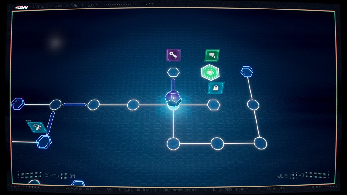 Ibland förekommer problem som dina agenter inte kan lösa, då är det upp till dig att visa din hackarförmåga. Hackningsminispelen är ganska rättframa, hitta info och slutpunkten. Du rullar med en sfär längsmed olika banor, tänk typ stegprickarna i Fia med knuff. Under tiden behöver du låsa upp vägar genom input via pilkommandon, tänk dance dance revolution. Ibland behöver du hitta kombinationerna eller lista ut dem på något sätt, senare i spelet kommer du även möta antivirus som vill åt dig. Hackningen är nog den svagaste biten i spelet, men med tanke på att spelet mer eller mindre bara har tre olika element säger det inte mycket. Jag tyckte inte det var det roligaste, men var inte heller utråkad.