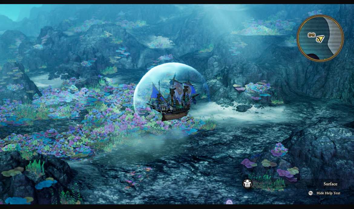 Något som är nytt för del 2 är att vi får tillgång till ett skepp vi kan segla runt med. Detta möjliggör transport till områden som är avgränsade av vatten. Senare i spelet låser vi upp möjligheten att dyka med båten under vattnet, där vi kan hitta grottor och hemliga föremål. Undervattensdelen fanns inte med i originalet och jag tycker den är implementerad på ett naturligt sätt. I båda spelen kan du dock använda dig av en magi som kallas Zoom, som kan teleportera dig till tidigare besökta platser, vilket underlättar utforskandet en del.