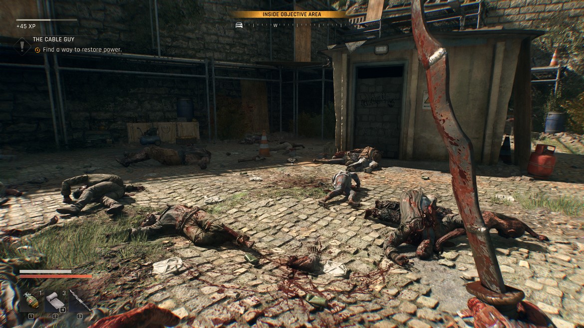 Ett annat exempel av detta hände när jag befann mig i ett stort rum och inte alls förstod var jag skulle ta mig hän och inte vågade hoppa – för att eventuellt dö av det höga fallet. Det visade sig att jag skulle hoppa och svinga mig på ett rep för att ta mig vidare, men det var ingenting som spelet någonsin hade kommunicerat till mig att jag kunde göra. Istället kändes det jobbigt då jag var rädd för att dö och förlora XP om det hade visat sig att det inte gick. Det skapade en känsla i mig att jag ofta förväntades förstå precis vad jag ska göra utan någon typ av förklaring och min frågeställning blev då att jag undrade om jag hade förstått detta om jag hade spelat tidigare Dying Light-spel.