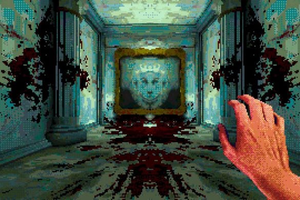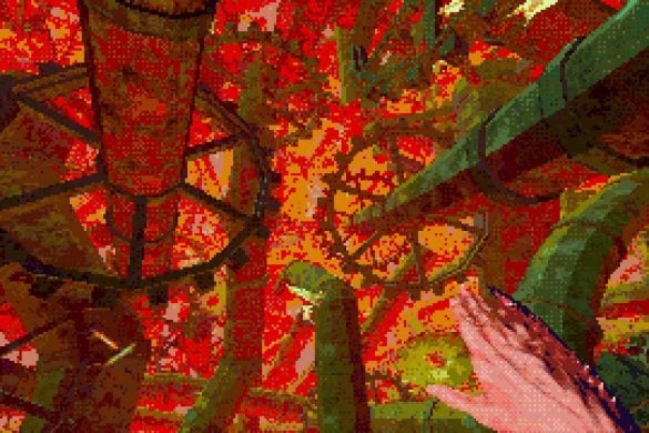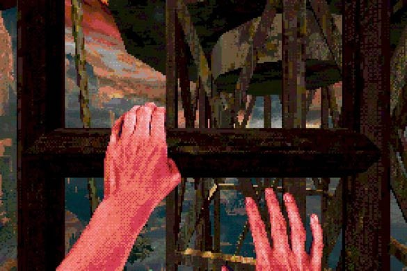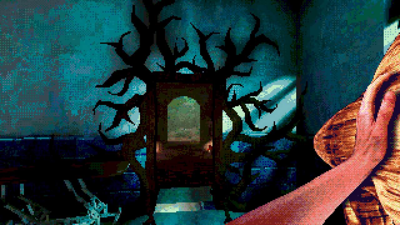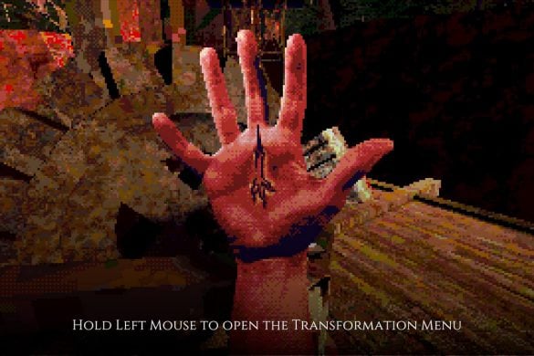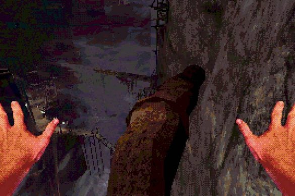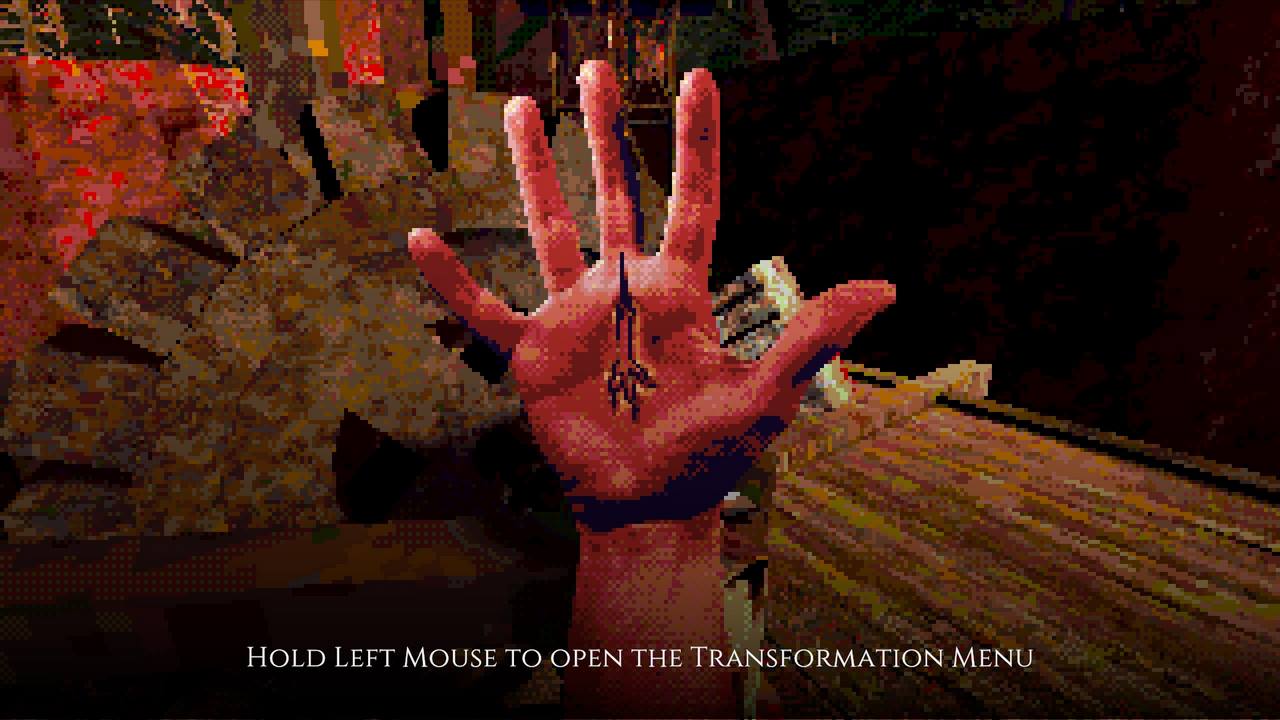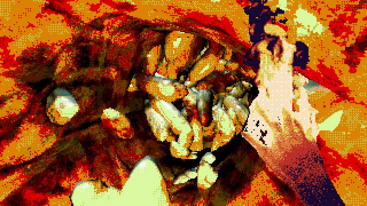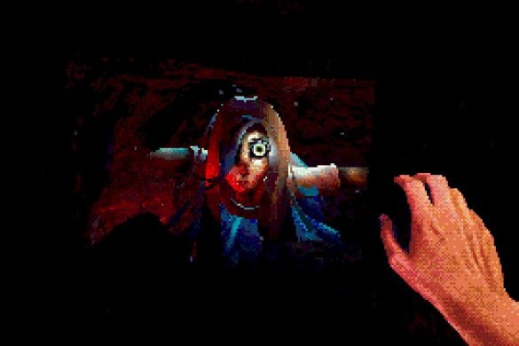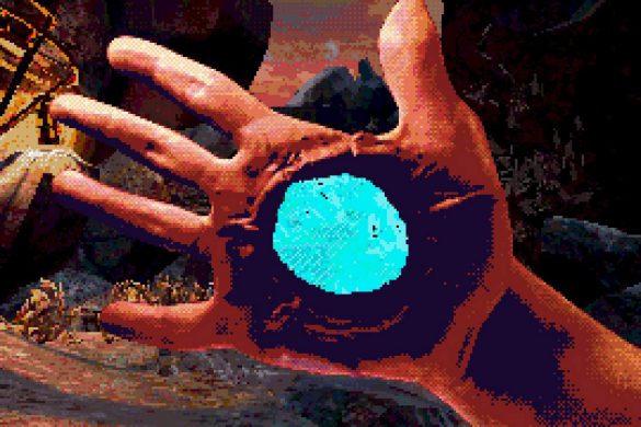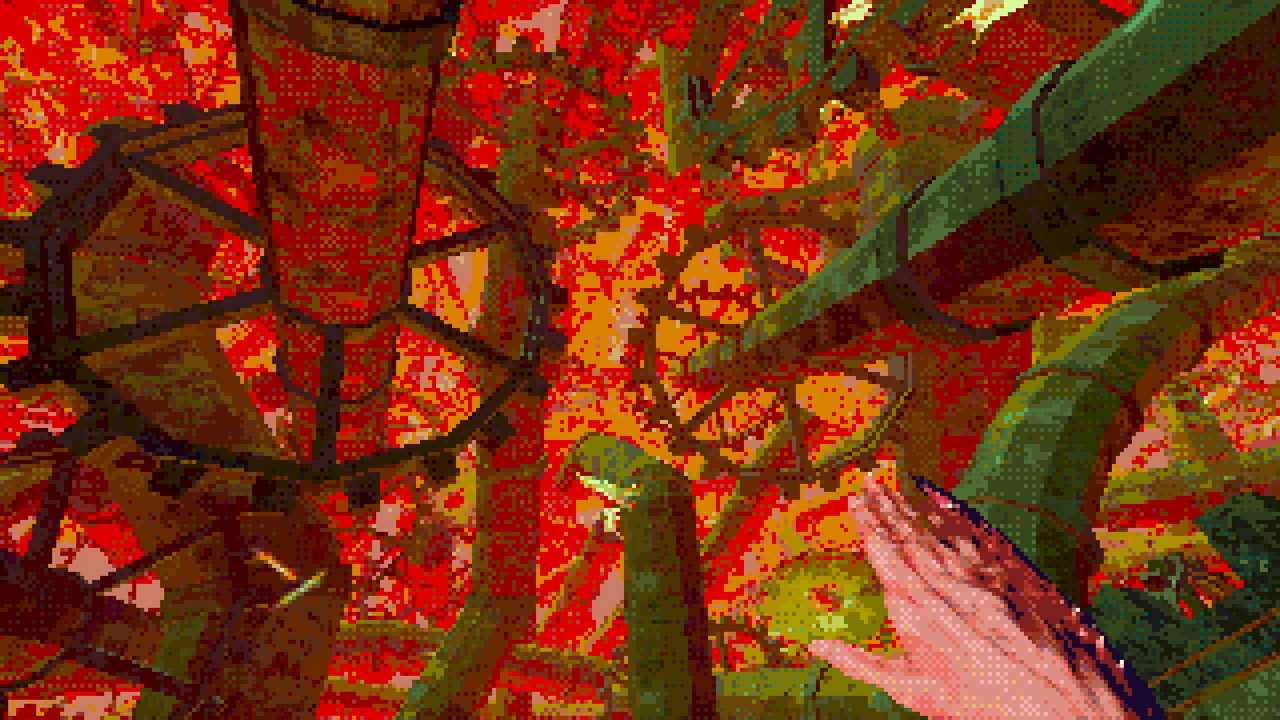 Estetiken är kanske det som fångat uppmärksamheten främst hos folk. I en tid med otroligt mycket retro-estetik bland spel lyckas Eclipsium sticka ut i mängden – på gott och ont. Vissa har fått huvudvärk av dithering– och pixeleffekterna. Som tur är går dessa att stänga av till stor del. Vad som dock stört mig, trots ett bra första intryck, är att estetiken mest känns som ett lager färg som inte fått torka ordentligt, målat ovanpå ett annat lager av ojämn färg. Antagligen är det inget de flesta kommer tänka på, men särskilt de olika typerna av dithering på världen och protagonistens händer petade mig rätt i ögat. Nu vet jag inte hur rätt eller fel jag har, men något står inte rätt till där. De matchar inte varandra, särskilt inte med tanke på att mycket i världen är 3D-modeller, medan händerna är digitaliserad video gjorda till 2D-sprites. Det skär sig helt enkelt på ett sätt som är svårt att förklara tills du själv lägger märke till det. Dessutom är vissa animationer lena som smör, medan andra hackar likt 90-talets begränsade bilduppdatering i revolutionerande 3D-spel. Båda är estetiska val, men, bestäm er för en konsekvent stil! Kalla det konstnärlig frihet om ni vill, men det är onekligen störande, ena stilen eller den andra hade funkat bra – bara allt var enhetligt.
