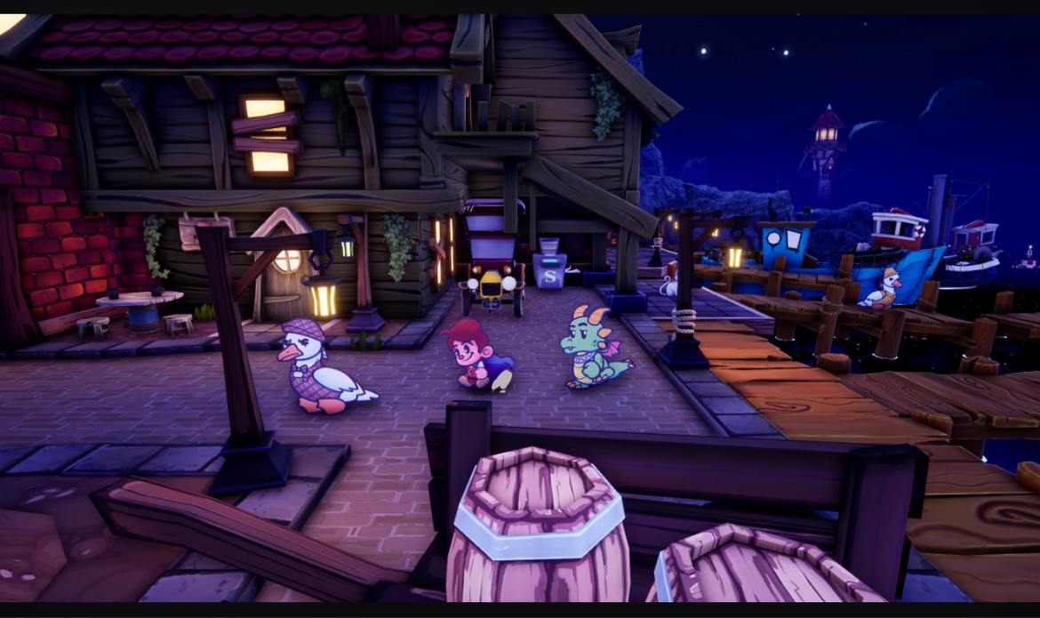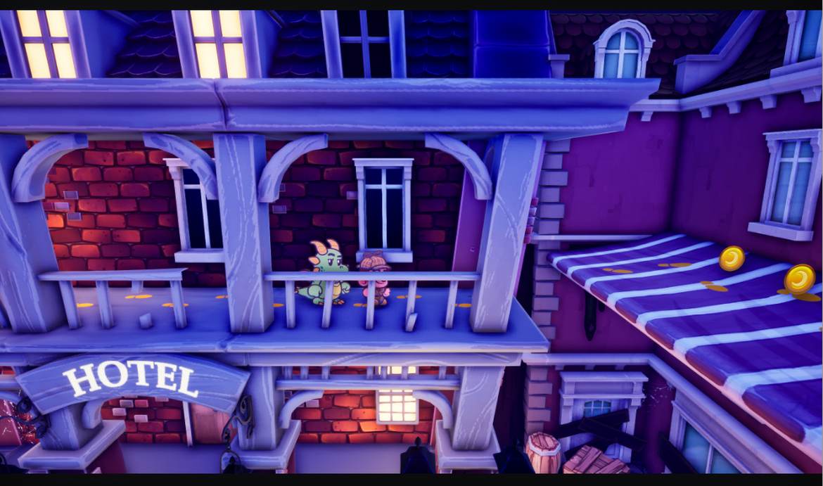 Jag slogs direkt av hur pampig musiken är. Det är storbandsjazz för hela slanten här och jag tycker det passar väl. Spelet innehåller inget röstskådespel utan bara små grymtningar från karaktärerna, precis som i Paper Mario-spelen. I min mening passar det, men det hade varit kul om spelet hade röster.