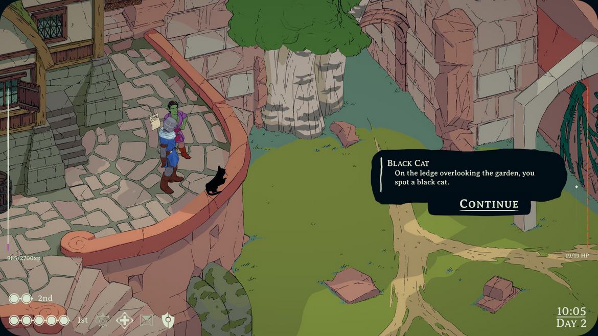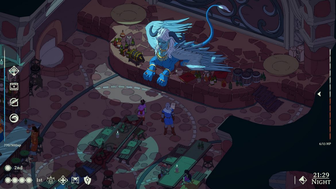 Vad som dock får spelet att skilja sig en aning från Disco Elysium är att det förekommer lite mer strider här. De är inte särskilt många, men de finns där. Dessa är turordningsbaserade. Precis som i fysiska rollspel rullas en tärning och summan baseras på färdigheten Dexterity. Den karaktären som rullar högst summa får börja och sedan följer du turordningen från högst till lägst. Striderna är inte särskilt animerade, utan det mesta är beskrivet i dalogrutor. När det är din tur får du helt sonika välja huruvida du fysikt ska slå fienden, eller om du vill testa något annat. Du kanske kan övertyga fienden att inte slåss längre, eller så kanske du kan iaktta denne för att upptäcka eventuella svagheter. Jag gillar verkligen den här aspekten, då det ger spelaren lite mer frihet i hur du kan tackla problemet.
