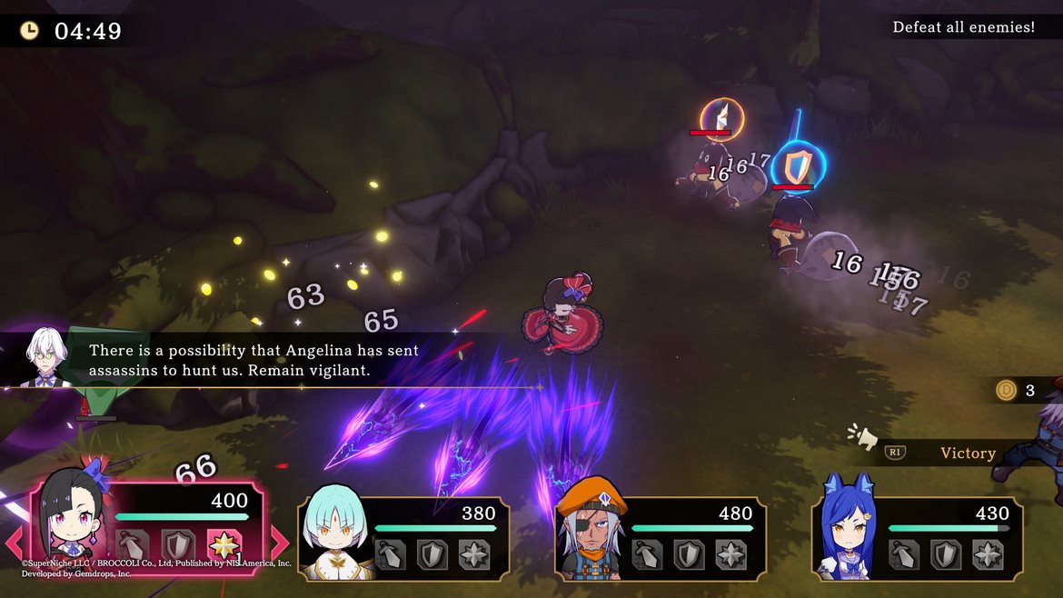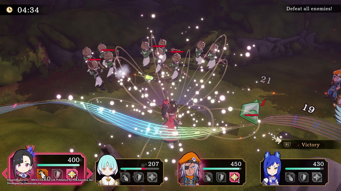 Striderna är generellt väldigt lätta, även utan det inkluderade “Sweets Mode” som gör spelet ännu lättare. Frågan är inte huruvida OM du kommer klara nästa uppdrag – det är snarare OM du behöver ett eller två försök att ta alla bonuskriterier utöver att klara standarduppdraget. Det är ett väldigt lättsmält spel även i spelmekaniksdepartementet, med andra ord. Och det är väl till spelets heder – generellt är spelet extremt lätt att plocka upp och spela 10 minuter, göra ett uppdrag eller två medans potatisen kokar på spisen. Men det här är inte ett spel som utmanar den erfarne JRPG-veteranen.