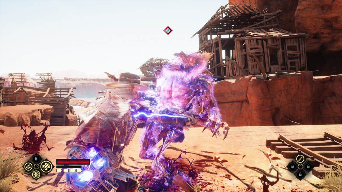 Hela idén med monstermosande fungerar väl hyfsat i kortare sessioner. Men ju längre jag spelar, desto tydligare blir det att spelet vallar mig fram på ett väldigt oengagerat sätt. Nivådesignen känns tråkigt mellanmjölksmässig, manuset bjuder på en klassisk hämndberättelse och allt med återvändande fiender som snabbt tappar dess ursprungliga udd. Vad som lyfter spelet över medelsnittet är dess grundläggande actionmoment. Du har närstridsattacker som du gör med Jesses elektriskt trimmade arm (även kallad ’the gauntlet’) – vilket kan få även den största fiende att flyga ett gäng meter när ett välriktat slag givits. Dessutom kan du sakta men säkert öka på med förmågor och vapen ju längre du spelar. Förmågor och vapen som siktar på att skapa variation i spelandet – men dessvärre även de faller något pladask ju längre du kommer. Spelets förmågor är nämligen obalanserade och ju längre du spelar, desto mer upptäcker du att du håller dig till ett vapen; det som gör mest skada. Inget annat behövs egentligen. Därmed blir det lite onödigt att variera upp det hela, och vips har vi nått samma monotona känsla som innan. Det är synd, för när man får vapen såsom elektrisk hagelbrakare, armborst och gevär blir det ändå kul en stund.