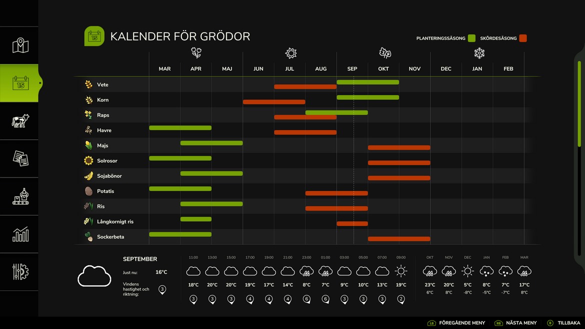 Det finns mer än någonsin att välja att odla. Morötter, potatis, vete, råg, raps, ris, vindruvor är bara några av alternativen. Flera av dessa kräver dessutom special-maskiner för sködsel och underhåll. Tidigare spel tycker jag inte har tagit hänsyn till däck och liknande men här känns det som att välja med att köra med tunnare däck vid besprutning eller dubbla däck vid harvning har en påverkan. Detta har vi bara sätt tidigare i den avancerade versionen av FS22 (tror jag det var) då det kom en dlc som även krävde rotation av grödor för att behålla en bra hälsa på våra åkrar. Detta har jag dock inte hittat än så länge som en inställning.