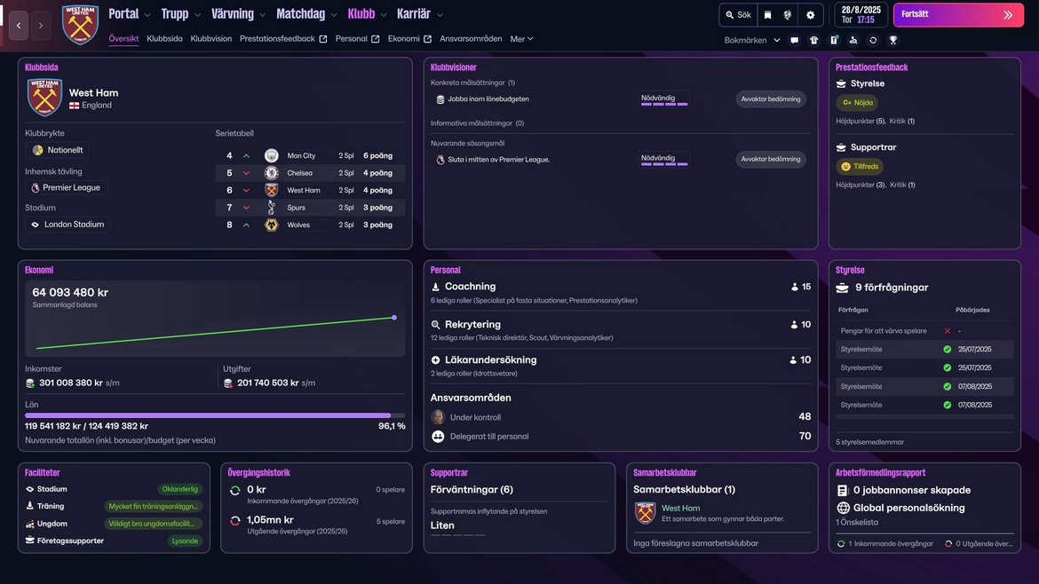 En annan intressant aspekt är hur spelet hanterar spelarrelationer. Konversationer känns mindre mekaniska, mer realistiska. Spelare har tydligare personligheter, och de minns saker – på gott och ont. Missköter du en konflikt kan den påverka laget i månader. Det gör att varje beslut får mer tyngd, men också att du ibland fastnar i sociala mardrömmar du inte riktigt kan påverka. Här känns FM26 nästan för verkligt – det är som att leva med ett lag fullt av primadonnor, viljor och känslor, och försöka hålla alla nöjda. När vi tar ett steg tillbaka inser du att spelet egentligen handlar om förtroende. Förtroendet för ditt lag, din stab, din egen förmåga att fatta rätt beslut i ett spel som nu känns mer komplext än någonsin. Det är kanske inte den mest lättillgängliga versionen i serien, men det är utan tvekan en av de mest ambitiösa.