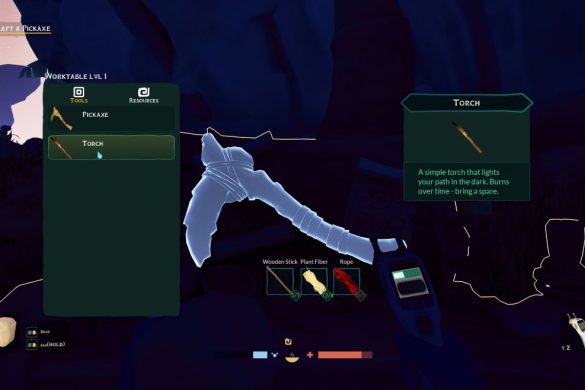 Visuellt är spelet däremot en fröjd. Stilen är mer ”Disney” än realism, med mjuka färger, fantastisk ljussättning och en dygnsrytm som gör nätterna genuint mörka. Som tur är kan jag tillverka facklor och min scanner har en ficklampa, dock med begränsad batteritid. Biomerna jag stött på var djungel, strand och grotta men det ska finnas en större variation när spelet blir klart samt en co-op funktion som inte finns i dess nuvarande form.