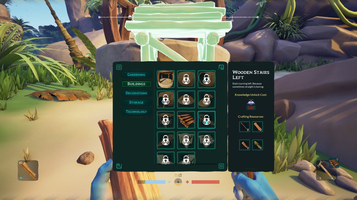 Spelmekaniken är en förenklad form av överlevnad som till största del, just nu ska jag tillägga, går ut på att scanna och experimentera fram för att bygga upp min bas. Med tiden förvandlas mitt läger till en bas med allt som är tillgängligt i spelet. Jag har fixat odlingar, förvaringslådor, byggstationer och ett litet hus i anslutning till mitt kraschade skepp, men jag ser potentialen då många av sakerna är låsta så ser jag vad som kommer när väl spelet är släppt i sitt fullo.