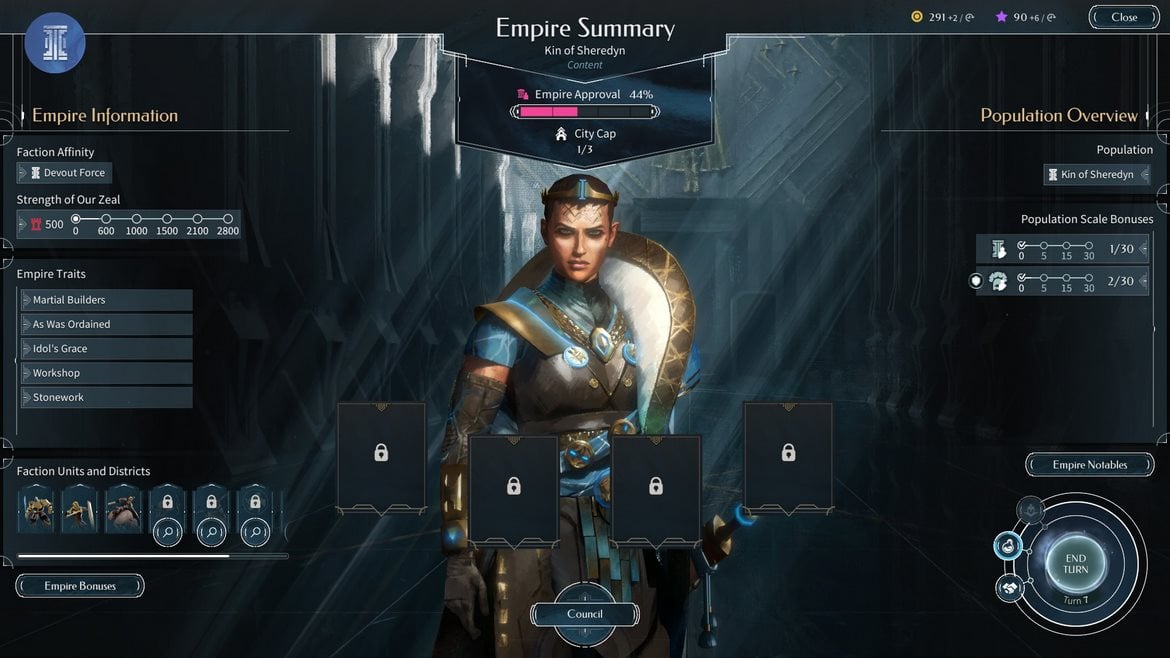 ENDLESS Legend är Amplitude Studios fantasyinriktade variant av ENDLESS-spelen, vilket är en intressant premiss i sig själv. Förhandstitten erbjuder oss att spela ett lärande tutorial-läge som jag gav mig på med hull och hår. Häri blir vi introducerade till människofaktionen Kin of Sheredyn som tydligen är någon form av utstick av United Empire som kraschlandat på planeten Saiadha. Din uppgift här är att utforska en bra plats att etablera din huvudstad, varpå du ska lära dig hur du utför dessa fyra ’’X’’ som genren är känd för. Vi får även lära känna denna faktion och spelets grundläggande mekaniker, som hur forskning driver på olika eror och hur vi kan ställa oss diplomatiskt till andra faktioner.