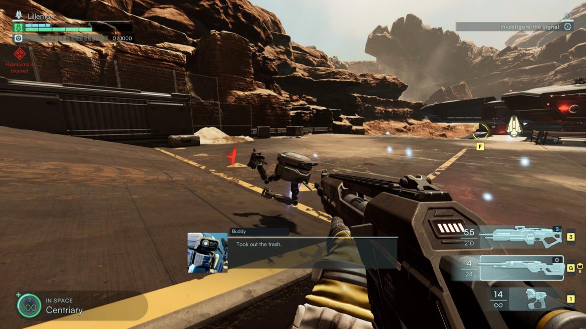 Skulle du vara någon som gillar att spela själv eller har kompisar som har ”jobb” eller ”familj” är det inte kört för det. Jag känner själv att spelet var roligast när jag spelade med en kompis men om du är själv får du hjälp av världens bästa lilla beväpnade robot – Buddy. Jag älskar Buddy och om något skulle hända honom bor jag inom en timme till Stockholm… Han sköter allt som dina kompisar skulle ha gjort om de inte ”värderade tiden med sina barn mer” och hjälper dig både till fots och på skeppet. Han gör allt som de andra tre kunde gjort från att skjuta de sekundära vapnen till att laga skeppet. Han kan även skjuta fiender och ta gods tillbaks till skeppet när ni rör er till fots eller flyger runt med raketryggsäck. Han är en av de bästa kompanjonerna jag haft äran att spela med, trots att han har typ fem repliker.