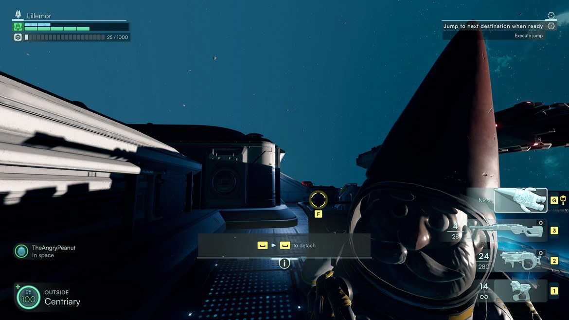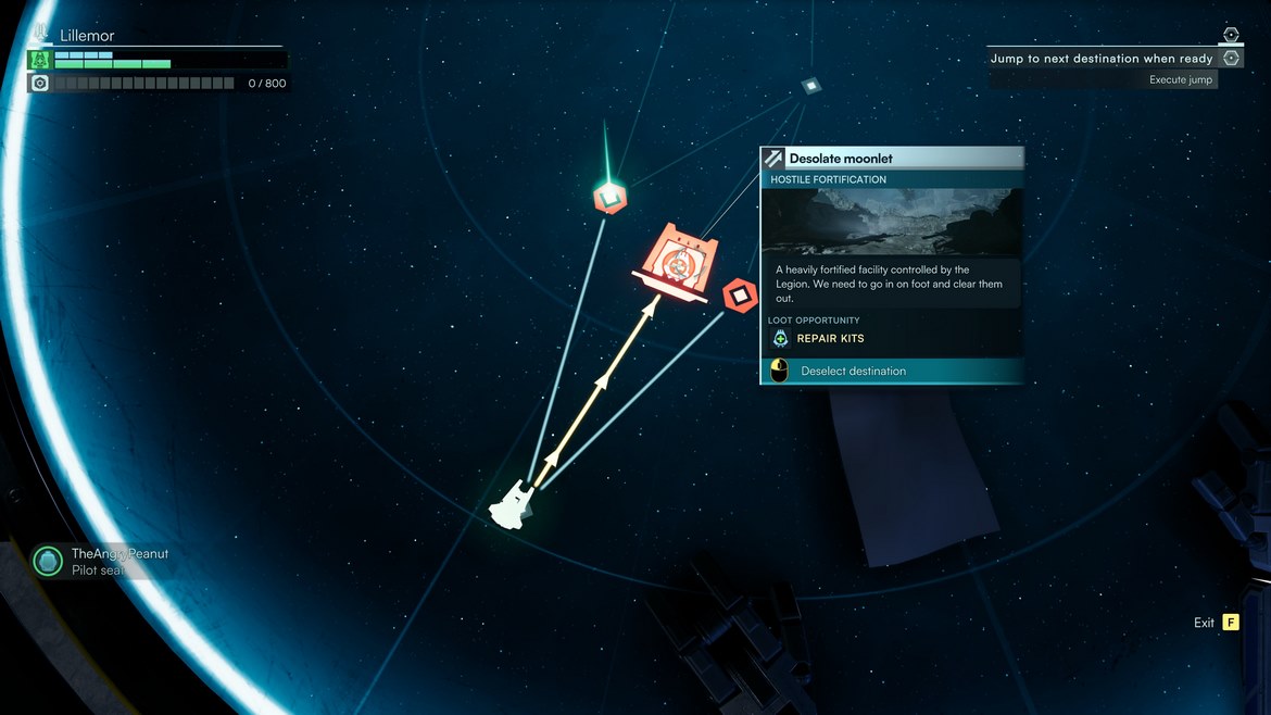 Med fienderna borta eller målen uppfyllda kan ni hoppa till nästa destination och lösa det ni behöver för att ta er vidare, vilket kan variera ganska kraftigt. Nu låter det som att detta är ett spel där vi bara flyger skepp – detta är icke fallet. Du kan sömlöst ta dig ut på skeppet och gå på utsidan av skrovet, vissa viktiga skeppsdelar är faktiskt lokaliserade där. Du har även en fräck raketryggsäck och en änterhake vilka kan användas för att bärga gods som finns på de olika kartorna vilket i sin tur förbereder dig för ditt slutgiltiga uppdrag.
