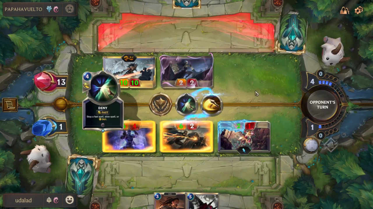 Legends of Runeterra använder sig även av det kända spelningssystemet i MTGA som kallas ”the stack”. Detta betyder att om en spelare använder en spell så får motståndaren ett tillfälle att kontra detta. För att detta ska lösas på ett logiskt sätt används ”the stack”. Tänk er att när du spelar en spell lägger du fram kortet på ett bord. När motståndaren sedan spelar någonting för att kontra det du gjorde lägger denna kortet ovanpå ditt kort. Detta pågår tills inget kort spelas mer. Då tar korten sedan effekt från toppen neråt tills alla kort har tagit effekt. Om ett kort högre upp i denna hög gör att ett senare kort inte har något mål har detta kort ingen effekt alls (Undantag finns).