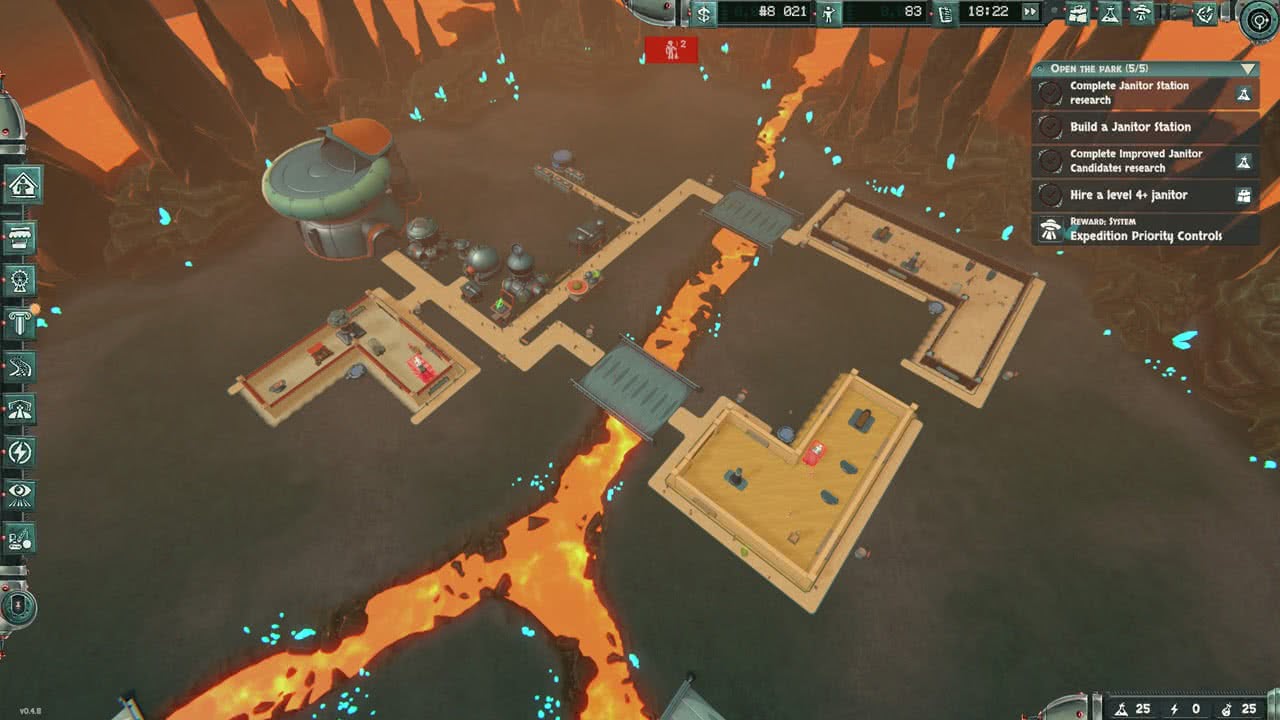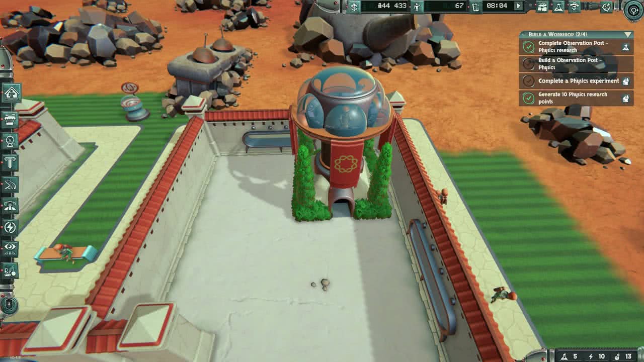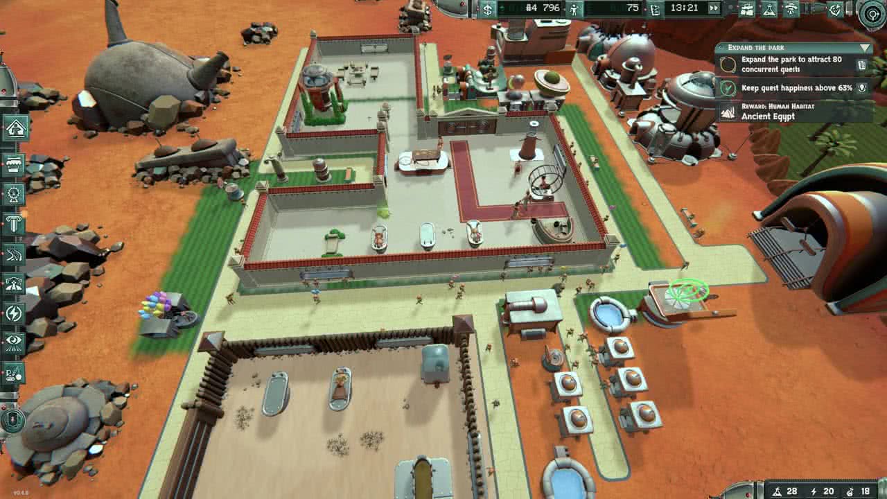 Först behöver jag bygga en inhägnad där människorna kan bo. De behöver mat, vatten, möjlighet att kunna vila och kanske något att roa sig med. Till en början har jag bara tillgång till marsdesigner när det gäller inredning, men jag kommer snart kunna få tag på nya grejer. Jag behöver dock först få tag på människor som ska bo i min nybyggda inhägnad, och för att få tag på dem behöver jag skicka ut ett skepp på en expedition. Till en början kan skeppen bara hämta ett fåtal människor från antikens Grekland. Det är ju alltid en start och de lockar in besökare, vilket genererar pengar som jag desperat behöver. För det kostar att bygga inhägnader, att skicka ut skepp på expeditioner, för att inte tala om alla löner jag dessutom behöver betala ut. Sen har jag ett massivt lån jag behöver betala av och banken drar av pengar lite då och då, med ränta inräknad.