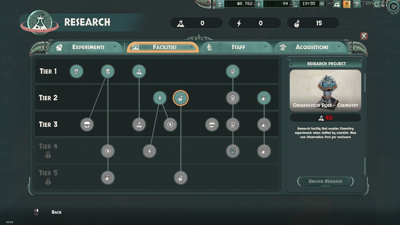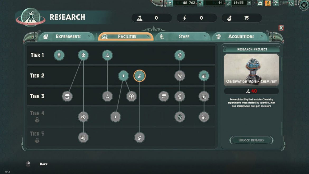 Människor är rätt tråkiga att titta på. Därför kan det livas upp med olika experiment som genomförs på dem för att se hur mycket de tål. Det kan vara test med vatten, elektricitet eller gamla hederliga sågklingor. De här experimenten genererar forskningspoäng som jag sedan kan använda för att efterforska olika förbättringar. Som att anställda kostar mindre, nya forskningsstationer, bättre urval av anställda och nya byggnader att bygga. Experimenten lockar dessutom fler besökare, som njuter av att kolla på hur människor plågas. En extra bonus är att ju mer jag experimenterar på människorna, desto större expeditioner kan jag skicka iväg. Jag kan då få med fler människor och även inredning som jag kan använda mig av när jag dekorerar inhägnaden. Det är en bra grej, för dels ser det trevligare ut men vissa människor har krav på sin omgivning och jag kan behöva anpassa mig efter dem. Alternativt kan jag bara omvandla de kräsna till biomassa och använda den som byggmaterial. Mig kvittar det egentligen.