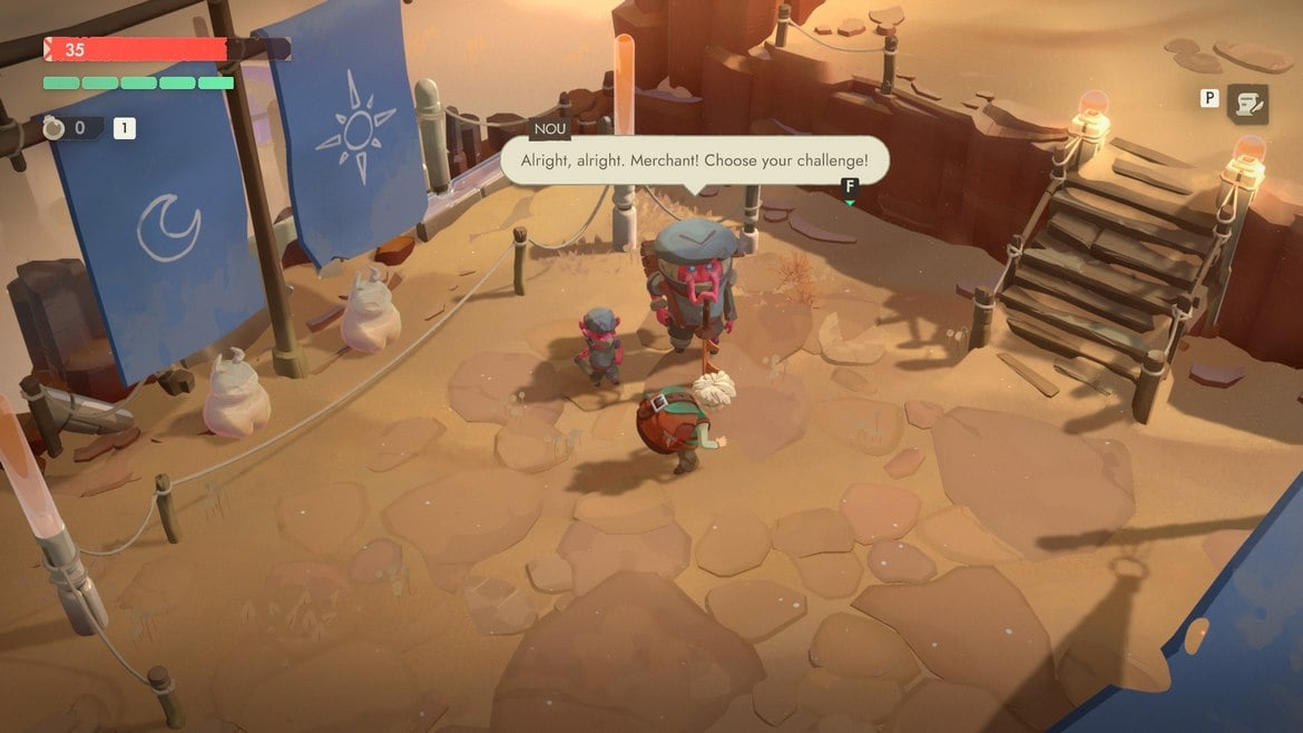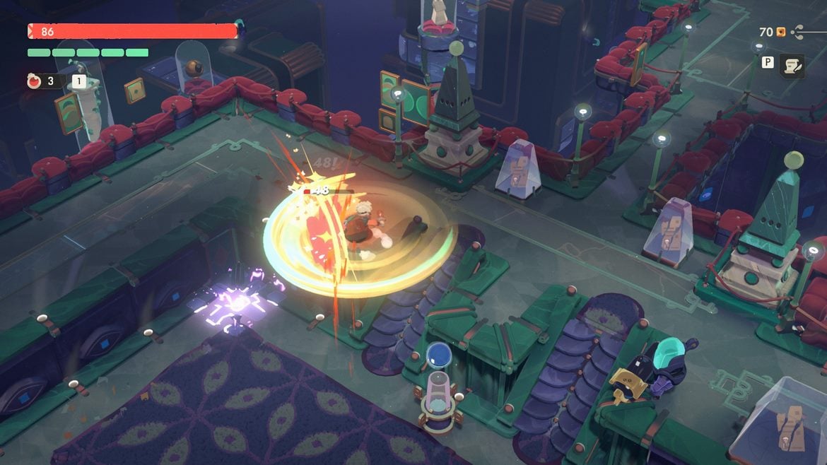 Däremot ökar också svårhetsgraden efter detta. Vi styr vår huvudkaraktär Will enligt isometrisk vy genom arenorna och attackerar fienderna med enkla, men roliga former av realtidsstrider. Detta liknar exempelvis Diablo, men skiljer sig i antalet fiender och hur lätta de är att besegra. Små fiender är snabba och många, men lätt att avverka medan större är segare och långsamma. Vi kan även inkludera olika attackmönster som öppnar upp olika möjligheter, att dänga till fiender med ryggsäcken när de är knockade (kallad rupture) får dem att flyga över banan och in i väggar, orsakandes stor skada. Att skjuta flygande fiender tar ned dem till marken, ofta följt av en ryggsäckssmocka.