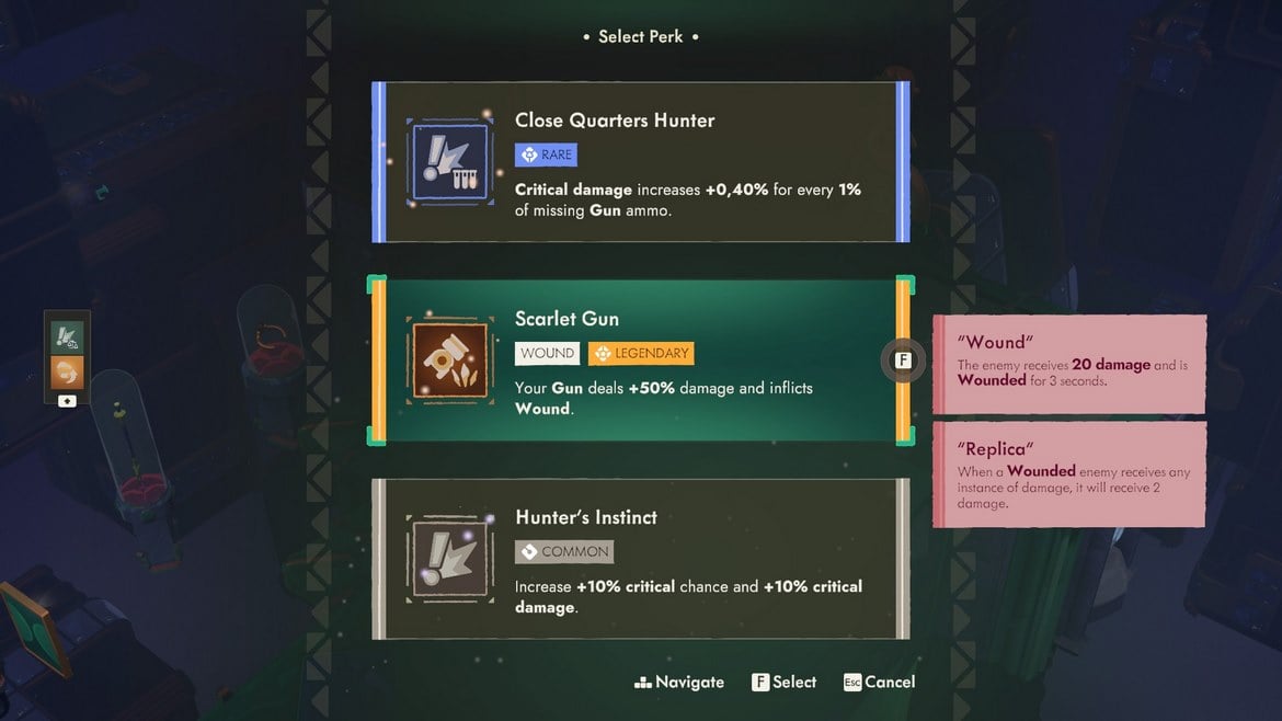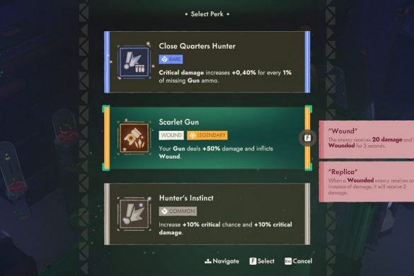 Jag nämnde kort att dessa är roliga och de lyckas vara det många timmar in. Det som Digital Sun lyckats med i detta fall, även i det ofärdiga läge som spelet är i, gäller variationsmängden och effekterna som förmåner (perks) kommer i. Spelet har även utökade raritetsaspekter, vi kan exempelvis få förmånen wound som får fiender att tappa hälsa under en tid efter vi träffat dem och hur detta påverkar dem kan sedan variera sig i omfattning. Det kan vara att fiender får ökande lager av wounds beroende på hur många slag du tilldelar dem och hur detta anpassar sig bäst för vapen med hög attackhastighet.