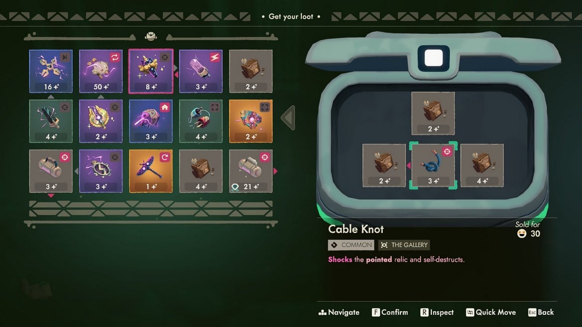 Vi kan slänga saker direkt ur ryggsäcken också, men allt kan komma till användning om vi är kloka och har lite tur. Variationen i de olika effekterna till de olika artefakter vi plundrat tvingar oss att bli taktiska när vi ska ställa oss till ryggsäckens begränsade platser. Vi vill få så mycket värde ut ur varje omgång som möjligt!