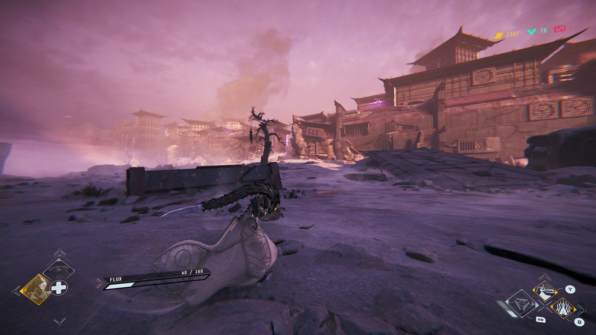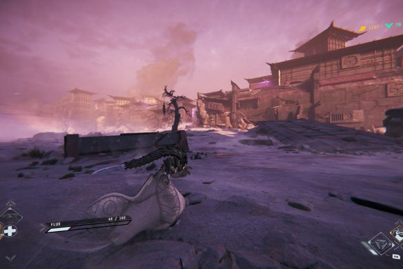 Stilistiskt sett påminner spelet väldigt mycket om Warframe, Flux gör till och med en liten piruett som påminner väldigt mycket om “bullet jumping” animationen som finns i Warframe. Hela samuraj/ninja looken som finns i Morbid Metal är oerhört passande och rent visuellt har utvecklarna gjort ett bra jobb med att kombinera omgivningarna med utseendet av fienderna och karaktärerna. Spelet ser också fantastiskt bra ut och känns väldigt väloptimerat för att vara i Early Access, vilket är ett plus, eftersom striderna kan bli hektiska och tajming blir väldigt avgörande i strider. Det går inte att parera attacker, bara undvika dem, och med en tidig uppgradering kan du göra en motattack om du undviker en attack vid rätt tillfälle.