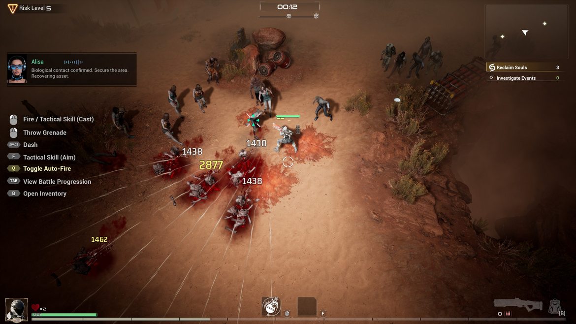 Sett till vad spelet handlar om, så finns det faktiskt lite att grotta ner sig i. Här spelar du som en nyligen avliden själ som fastnat i ett byråkratiskt efterliv. För att få en ny chans till liv måste du arbeta av din skuld genom att ta uppdrag åt ett märkligt försäkringsbolag som hanterar reinkarnationer. Det innebär att du skickas ut i farliga, ofta absurda uppdrag där du bekämpar fiender, samlar resurser och försöker överleva tillräckligt länge för att kvalificera dig för ett bättre nästa liv – allt medan spelet driver friskt med både döden, kapitalism och meningslös administration. Nåja, det är åtminstone hur spelet sätts upp, när du väl är igång med massakrerandet försvinner snabbt berättandet ur fönstret.