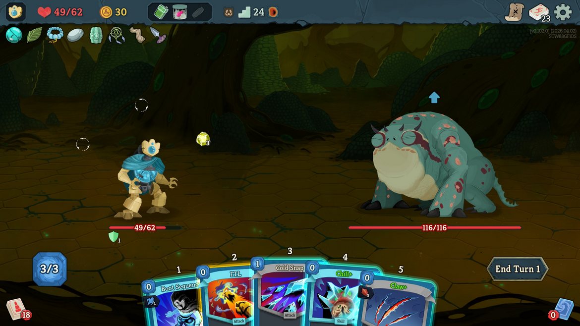 Det första som blir tydligt är hur starkt spelet lutar sig mot sin grund. Precis som i originalet handlar det om att ta sig uppför spiran genom turbaserade strider, där du bygger din kortlek längs vägen genom belöningar, möten och vägval. Kartan breder återigen ut sig i förgrenade stigar där varje val av väg innebär en avvägning mellan risk och möjlighet. Striderna är fortfarande turbaserade, och kortleken är fortfarande navet kring vilket allt kretsar. Det är en struktur som inte bara känns igen – den känns trygg. Det finns en tydlig medvetenhet i hur lite som faktiskt förändrats på ytan. Uppföljaren verkar inte vilja ersätta originalet, utan snarare fördjupa det.