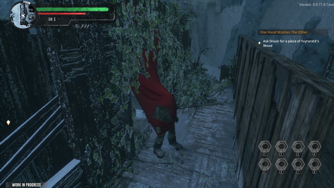 Vad vi har i nuläget är en regelrätt variant av Acion RPG med lite tillverkningsmekaniker och ett faktionssystem där du bildar relationer med invånare. Du vaknar upp i ett litet samhälle som en jättelik man utan namn. Varpå du börjar bekanta dig med invånarna av detta lilla frusna samhälle uppe i bergen någonstans så får du förstå att allt inte riktigt är som det borde. Du springer iväg till smeden och får välja ditt närstridsvapen – tvåhandad yxa eller bepansrad handske med sköld. Sedan springer du i väg för att göra lite smått och gott.