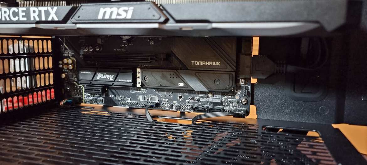 Här med glaspanelen borttagen (pga reflektioner). Fritt spelrum ändå för längre grafikkort.
