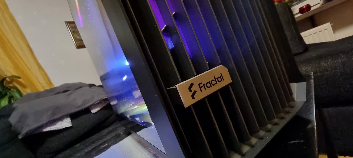 Designmässigt har det hänt mycket, och med en någorlunda kurvad toppplatta, får du framförallt en industriellt påminnande frontpanel, där RGB-fläktar lyser igenom på ett fräckt sätt genom den grill som sitter där. Det känns verkligen som att Fractal Design vill uppnå något nytt sett till det utseendemässiga och det lyckas de med riktigt bra. Den står ut på ett härligt subtilt sätt, och ger en modern känsla – särskilt i paritet med den mängd upplysta fläktar som medföljer.