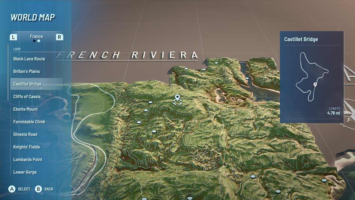 I spelet finns många av de stora märkena representerade i bilutbudet. Vi kan investera i en Lotus, Porsche, Bugatti, Koenigsegg, Pagani, Nissan likväl som en Ford. Och det är inte bara bilutbudet som utvecklarna har lyckats få till utan det finns också 50 olika banor. Banor i det här fallet är inte faktiska racing-banor utan vägslingor i de områden som vi kör runt på. Några må gå in i varandra men kombinationerna gör de roliga och varierande.