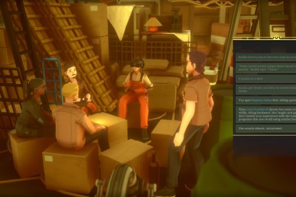 Generation Exiles design är helt makalös. Utvecklarna har lyckats skapa en värld som stilistiskt flörtar med spelet Firewatch. Här möts vi av en färgglad värld men det är också något ensligt och kusligt med allt. Berättelsen förmedlas med klipp där dialogen är textbaserad och korta sekvenser där den sparsmakade grafiken ihop med stämningen får ta den största platsen. Det är vackert och vemodigt med massor av stämning. Vi befinner oss på ett rymdskepp med slutmålet – en ny planet. Något har hänt med jorden och alla på skeppet är de sista som är kvar av mänskligheten.