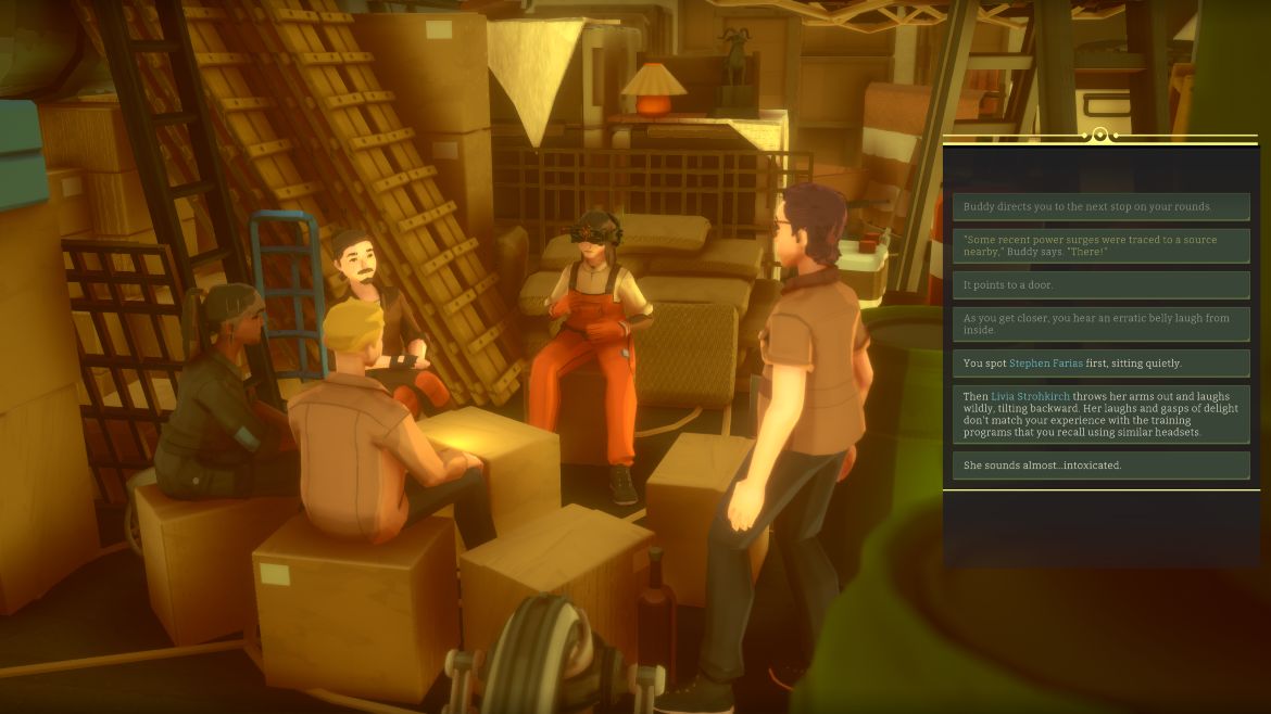 I början får jag skapa en karaktär och göra massor av val i dialoger om min bakgrund. Det känns som att du sätter din egen prägel på historien. Men efter att ha kört om spelet flera gånger kan jag bekräfta: dessa val betyder absolut ingenting. Berättelsen är statisk och du får samma utfall i berättelsen oavsett vilka val jag gör. Jag är kaptenen på skeppet med en besättning. Jag har visioner och minnen som är upp till mig som spelare att tolka fritt. Detsamma gäller valen av min besättning. De har personlighetsdrag och statistik som ser avancerad ut på pappret, men i praktiken kan jag ignorera dem helt. Det är ett system utan funktion. Varje gång jag startar om spelet måste jag göra en ny karaktär med nya dialogval och nya besättningsmedlemmar.
