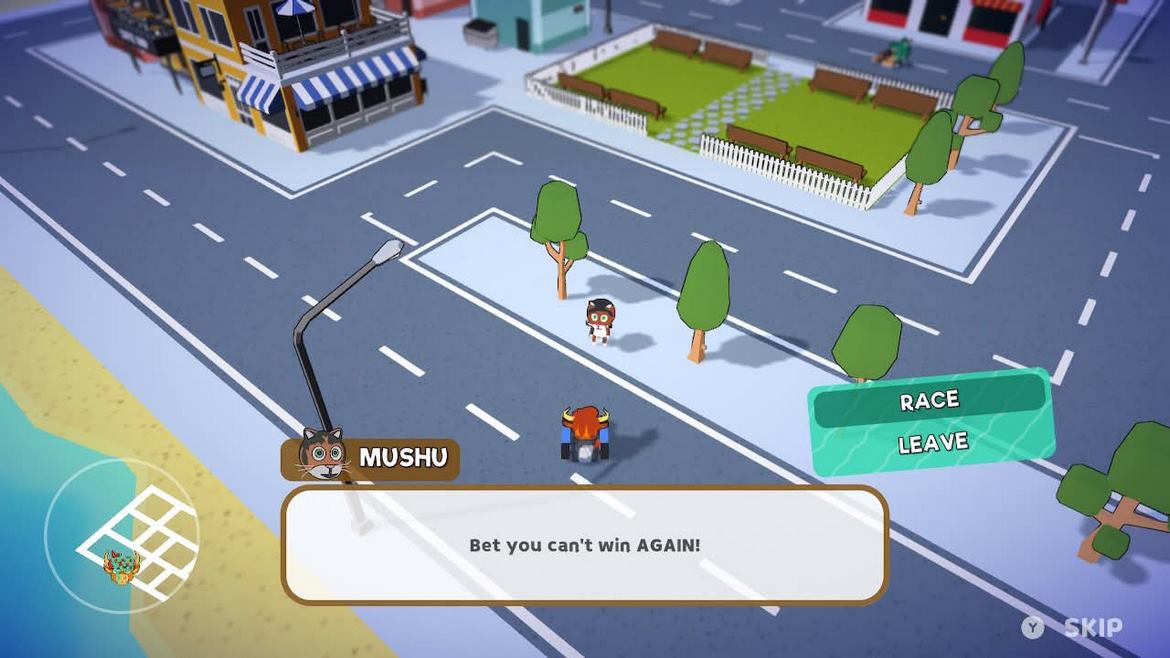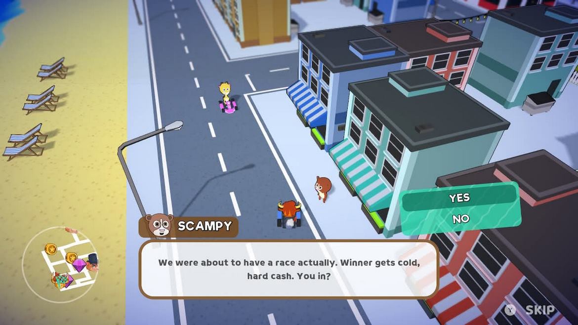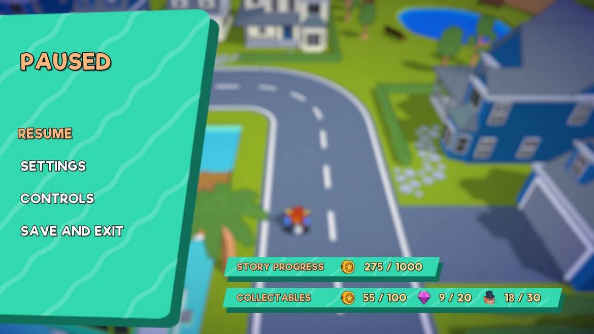 Längst ner i vänstra hörnet på spelskärmen finns en liten, cirkulär minikarta som visar var spelaren befinner sig någonstans och hur nätverket av vägar ser ut. Det är även här som alla samlarobjekt och uppdrag syns, de består bland annat av att samla ihop hundra guldmynt, trettio juveler och att köra sönder trettio reklamskyltar med borgmästarens ansikte på. (Spelaren får en bra överblick över de ihopsamlade sakerna genom att trycka på plus-knappen på handkontrollen).