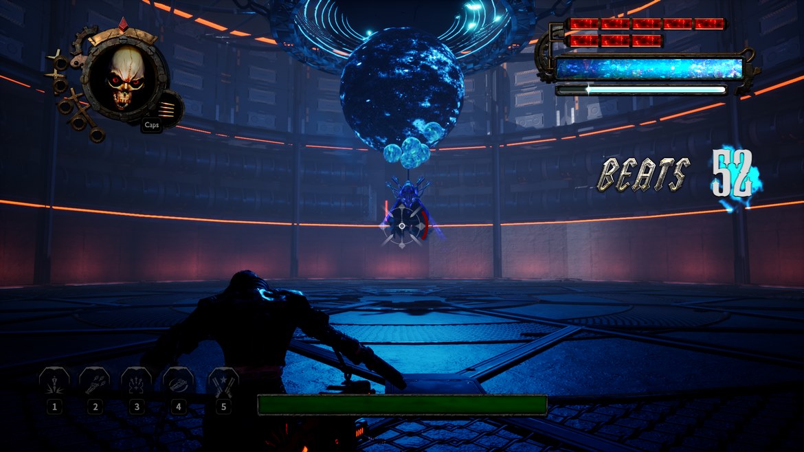I övrigt har vi att göra med ett skjutarspel i tredjepersonsvy. Vi ska ta oss genom flera olika banor och skjuta ner alla som visar upp sig under vår färd framåt. Grave gör detta med två stycke pistoler med oändlig ammunition. Jag uppskattar verkligen att vi inte behöver bekymra oss att ladda om och dylikt, då det verkligen hade saboterat bilden av att vi är en övermäktig och ostoppbar revolverman. Förutom att kunna skjuta oändligt har vi även möjlighet att skicka iväg starkare attacker som kallas Demolition shots. Här kan Grave skicka iväg en stor dödskalle prydd kanonprojektil, göra den kista han av någon anledning har hängandes bak på ryggen som en otymplig hockeytrunk till ett automatgevär, eller bara skjuta ut ett inferno av kulor runtomkring sig. För att kunna skjuta dessa specialattacker behöver vi samla på oss Demolition Points. Det får vi genom att skjuta ner fiender och samla på oss höga nummer av något som kallas för Beats. Nu betyder inte det att detta är ett rytmspel. Nej, nej skjut i vilken takt du vill så ska du se att det löser sig i slutändan.