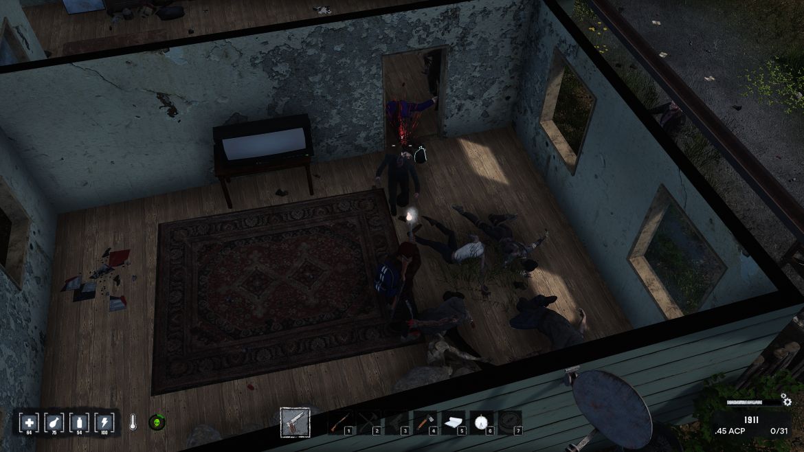 Buskar, träd och bilar som kan slås sönder markeras inte, medan stenar, skåp och bilar vars bagageutrymme kan öppnas gör det. Jag är osäker på om detta är ett medvetet estetiskt val eller en följd av att spelet fortfarande är i early access, men det är stundtals frustrerande.
