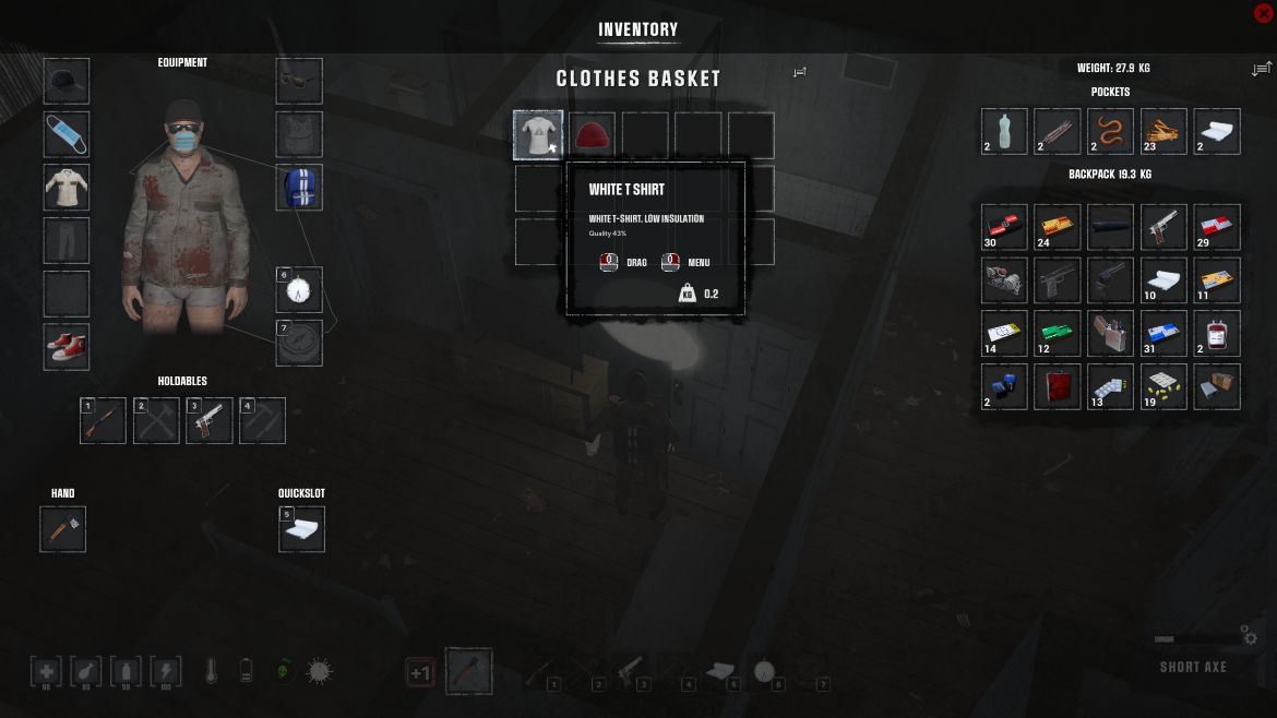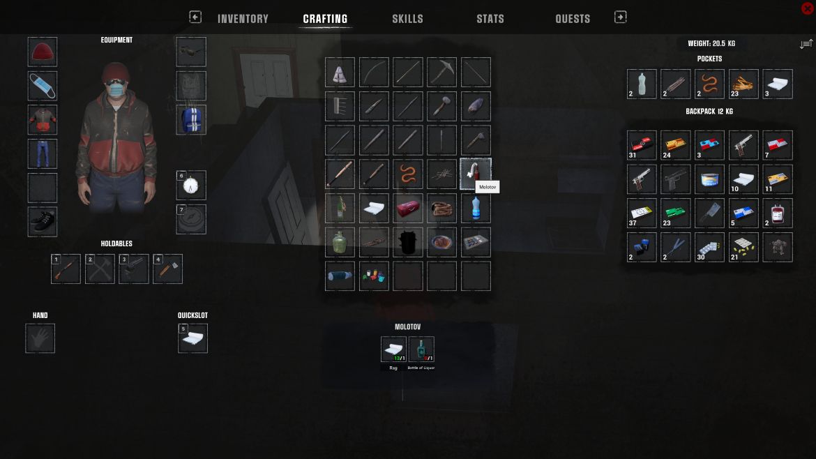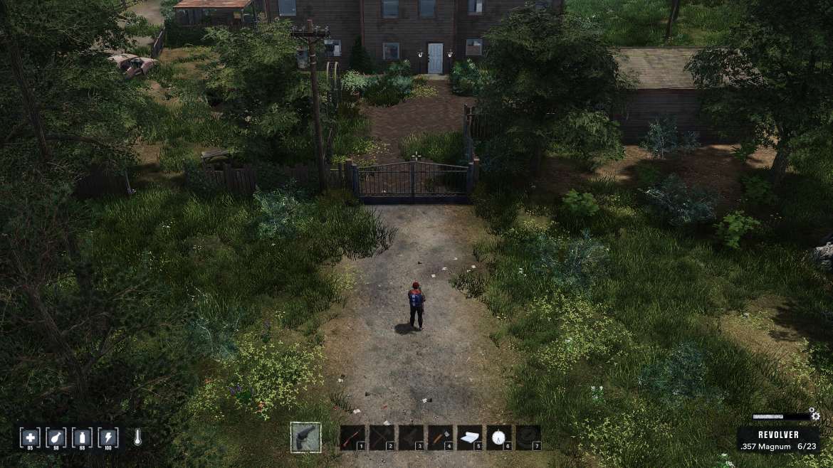 När jag utforskar är mitt främsta mål att hitta mat och material. Till en början måste jag hålla mig nära basen, eftersom ryggsäcken har begränsat utrymme. Jag hittar stora mängder tomburkar och tomflaskor som jag först ignorerar, varför bära runt på skräp? Men efter ett tag klickar det. När jag lagar mat eller samlar regnvatten kan jag förvara både mat och vatten i burkar, vilket förhindrar att det blir dåligt. Äter jag dålig mat blir jag sjuk och sjukdom i den här världen är nästan en dödsdom. Mediciner och antibiotika är nästintill lika sällsynta som ammunition.