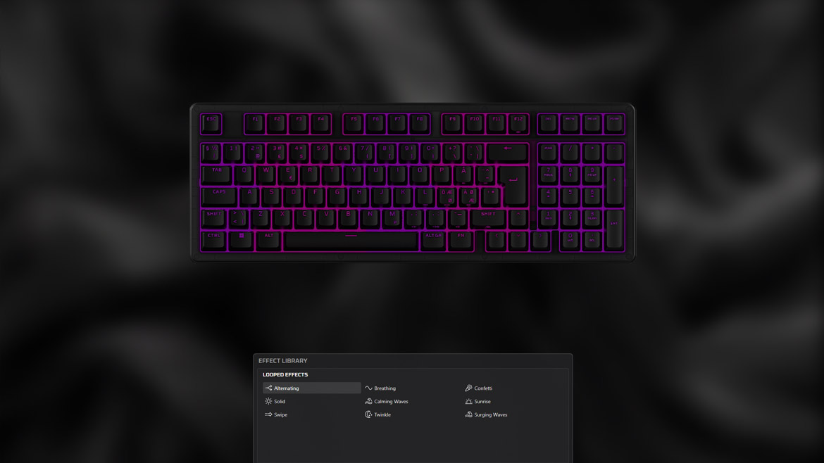 Det viktigaste är onekligen skrivkänslan – något HyperX har lagt stort fokus på här. Jag är glad att kunna meddela att känslan är bra, för det mesta. De linjära brytarna är tydligt försmorda, har en låg aktiveringspunkt på 1,8 mm och lagren av ljuddämpning bidrar till att ge tangentbordet en mörk och behaglig ljudprofil. Brytarna drar definitivt åt det ”clacky” (mer högfrekventa) hållet, men tack vare tangentbordets hot-swap-stöd kan du enkelt byta ut dem med det medföljande verktyget om de inte faller dig i smaken.