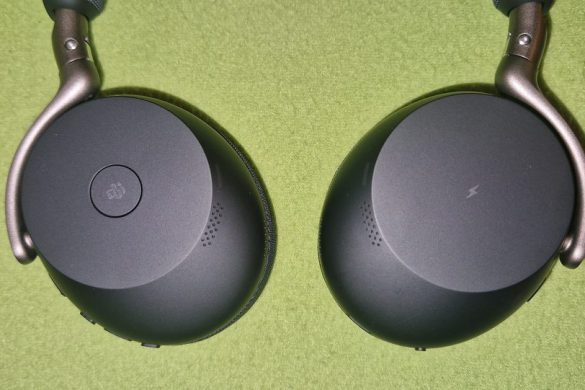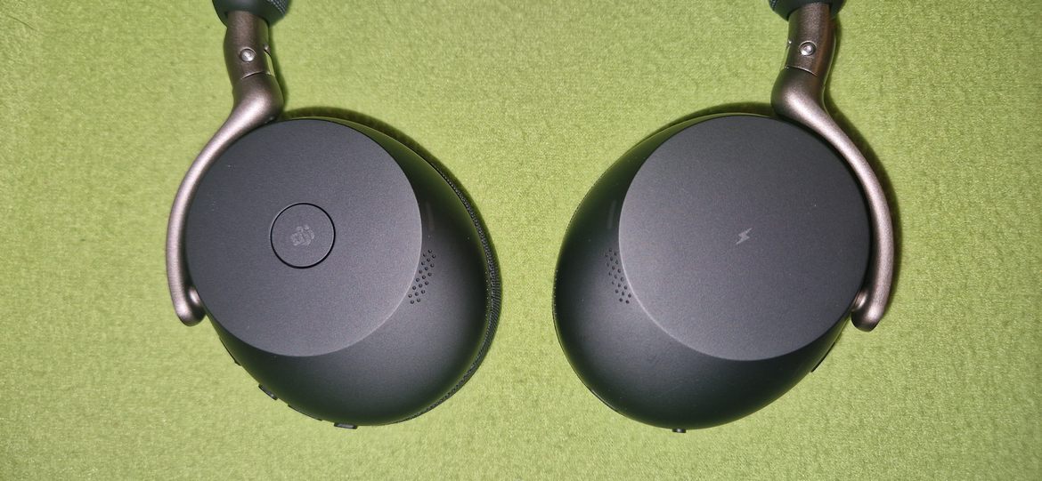 Sett till funktioner har vi knappen för att byta mellan ANC (Active Noise Cancellation) och HearThrough på vänster kåpas baksida och därmed ett klick ifrån att höra vad som sker runtomkring dig eller stänga ute oljudet. Under ANC knappen finner vi av/på som även används för att koppla till Blåtand. På den högra kåpans baksida finner vi en mute-knapp om du vill stänga av mikrofonerna, två knappar för att höja och sänka volymen och en för att ta emot samtal och avsluta dem. På utsidan av höger kåpa finns även en dedikerad knapp för Microsoft Teams (Teams-knapp gör att du kan hoppa in i möten direkt från headsetet utan att behöva klicka dig fram via datorn eller mobilen). Det är väldigt smidigt att klicka på kanpparna, dock är det lite tätt mellan dem på höger kåpa och det har hänt att jag har höjt volymen när jag ska pausa. Den vänstra kåpan används också för att lägga på en QI-laddare och laddas därifrån.