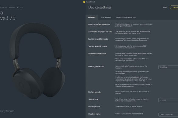 När det kommer till programvara – både till mobil eller dator har du Jabras egna appar: Jabra Plus på mobilen och på dator: Jabra Direkt.