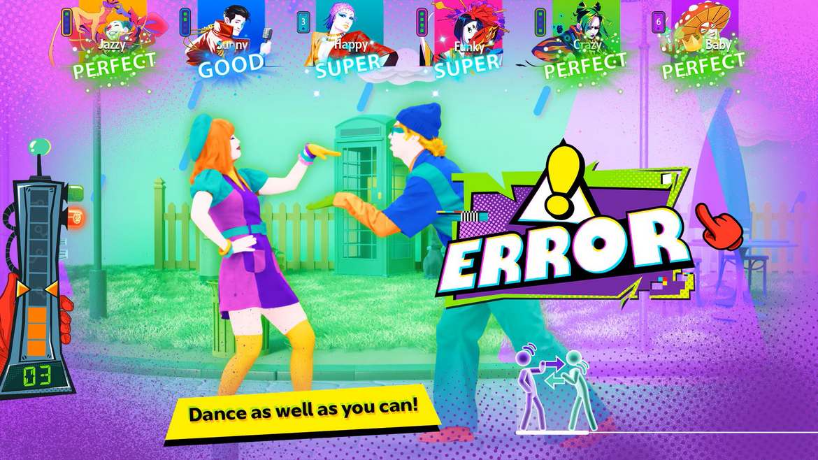 När jag hade dansat igenom mina favoritdanser ett par gånger kunde jag testa vad som kallades “Party-mode” där jag fick dansa delar av olika danser samtidigt som jag skulle klara utmaningar som att skärmen fylls med distraherande figurer som täcker över instruktionerna, eller plötsligt behöva stå helt stilla i några sekunder och sedan hoppa in i dansen igen. Detta kan jag tänka mig kan bli en hit på familjeträffar när utmaningen behöver livas upp lite. Det finns även gott om utmärkelser att få genom att utföra utmaningar och få tillgång till nya kosmetiska val till ens profil och liknande.
