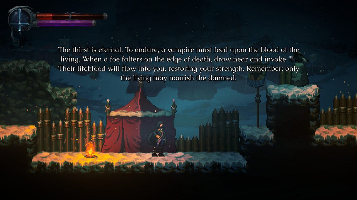 Senare i spelet låser du upp flera karaktärer med andra förmågor, men för att undvika spoilers tänker jag lämna det upp till dig som är intresserad att upptäcka det själv. Jag gillar att de har gjort karaktärerna distinkta från varandra i spelstil. Dock har jag lite problem med den förmåga karaktärerna har gemensamt, nämligen att attackera med sitt svärd. Du kan antingen attackera framåt eller huka dig och attackera nedåt. Dessa attacker känns oerhört stela och icke-intuitiva. Jag hade uppskattat om attackerna var mer dynamiska, men i nuläget känns det typ som att det enda du kan göra är att peta på fienderna tills att de dör.