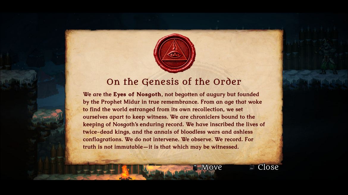 Legacy of Kain: Ascendance utspelar sig både före, men även under händelserna i Legacy of Kain: Soul Reaver och följer den nya karaktären Elaleth, som är syster till protagonisten i Soul Reaver-spelen, Raziel. Elaleth har fått en besvärjelse av Moebius, tidsväktaren. Hennes lott är att vandra mellan världar som en vampyr och i spelet ska hon ge sig ut för att hämnas en död vän. Spelet utspelar sig i kapitelform, där du får styra bland annat Raziel och Elaleth, som under resans gång blir rivaler. Jag måste erkänna att spelets narrativ är relativt svårt att hänga med i för någon som är ny till serien. Jag själv har bara testat lite av början av första Soul Reaver, samt sett lite videor om Blood Omen-spelen och jag kan inte påstå mig vara en expert på något sätt.